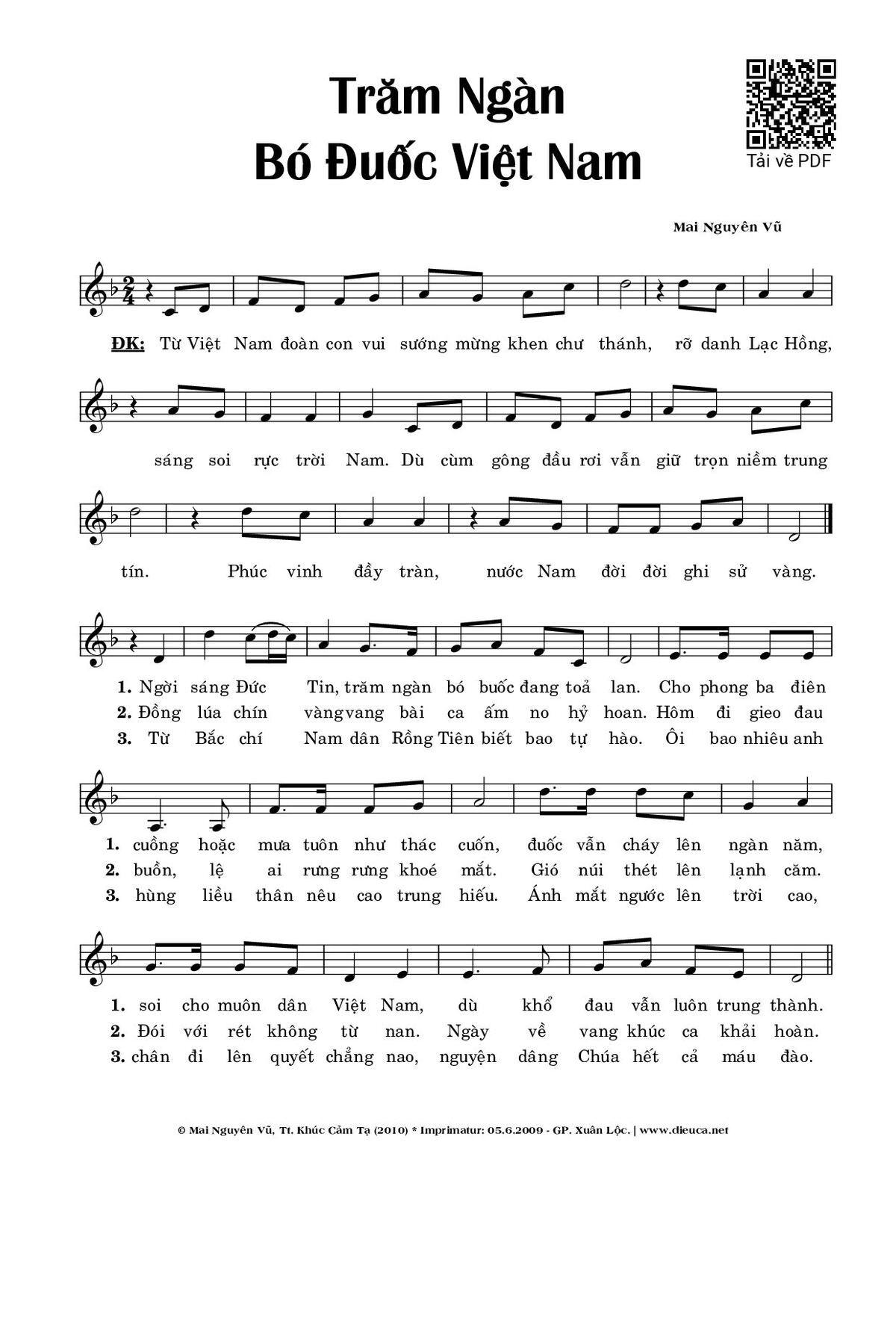 Điệp khúc: Từ Việt Nam đoàn con vui sướng mừng khen chư thánh, rỡ danh Lạc Hồng, sáng soi rực trời Nam. Dù cùm gông đầu rơi vẫn giữ trọn niềm trung tín. Phúc vinh đầy tràn, nước Nam đời đời ghi sử vàng.