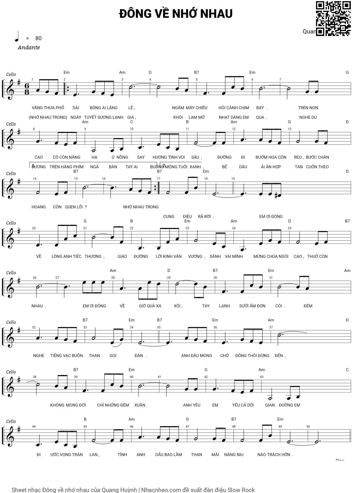 Transposition is the process of moving a song's melody and chords up or down in pitch by a constant interval. The direction of the transposition tool is indicated by a plus (+) sign for up and a minus (-) sign for down. Hover mouse over chords signs to see the chords chart of Đông về nhớ nhau song.