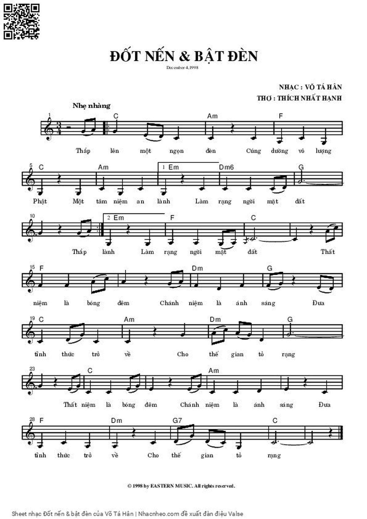 Võ Tá Hân Thắp lên một ngọn đèn Cúng dường vô lượng Phật [PDF] [Sheet] [Lyrics] [Mp4/Midi]