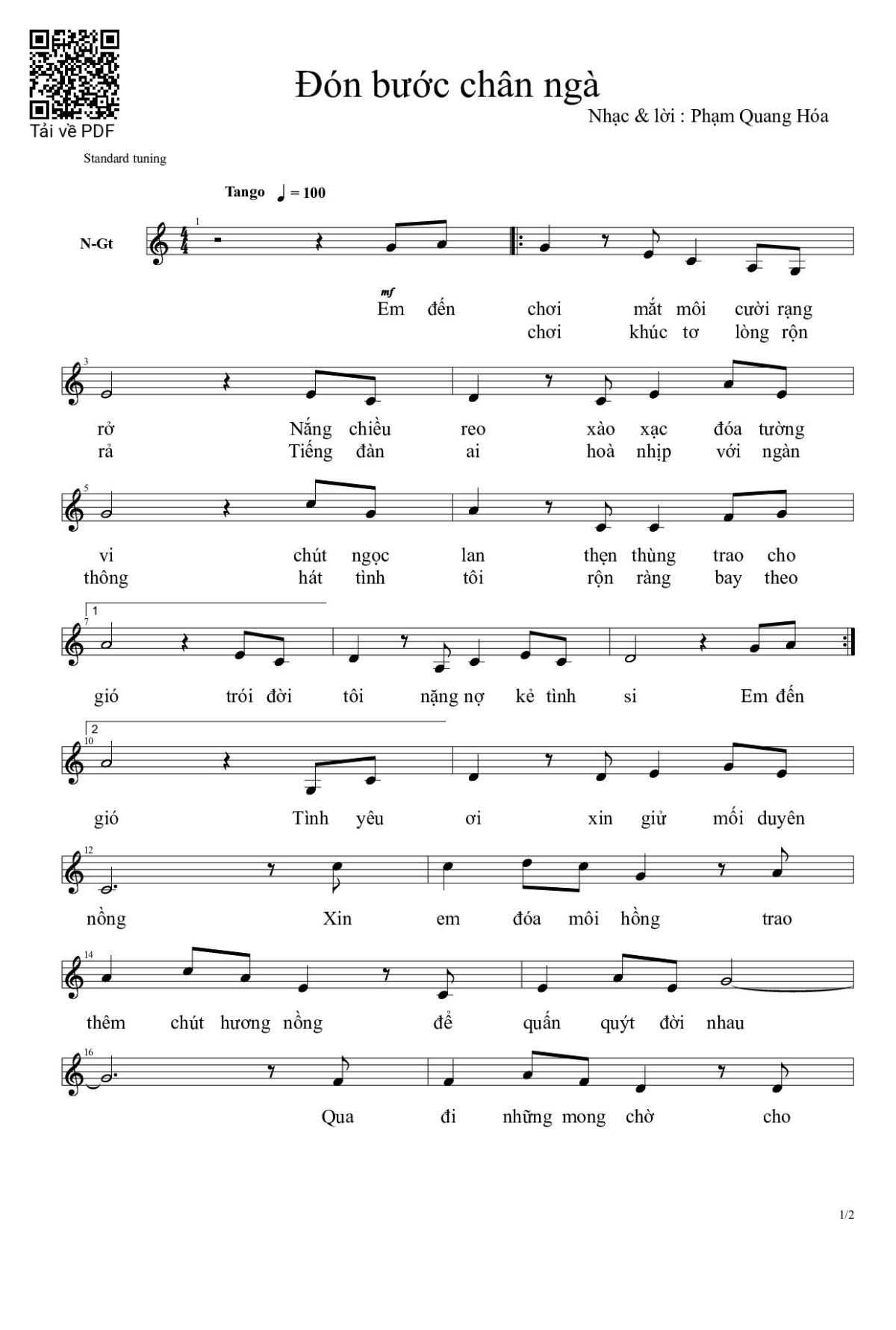 Phạm Quang Hóa Em đến chơi mắt môi cười rạng rở Nắng chiều phai xào xạc đóa tường vi [PDF] [Sheet] [Lyrics] [Mp4/Midi]