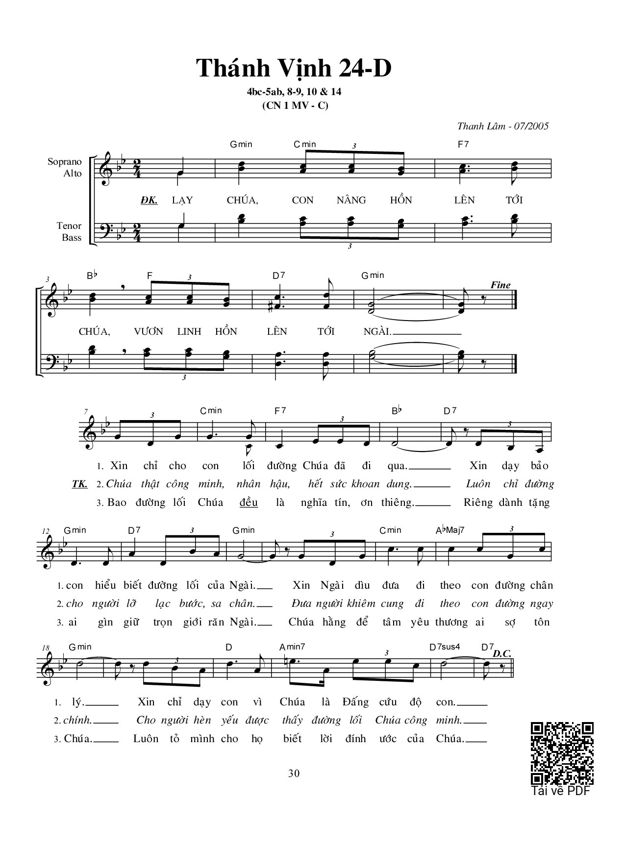 Thanh Lâm Lạy Chúa con nâng hồn lên tới Chúa vươn linh hồn lên tới Ngài [PDF] [Sheet] [Lyrics] [Mp4/Midi]