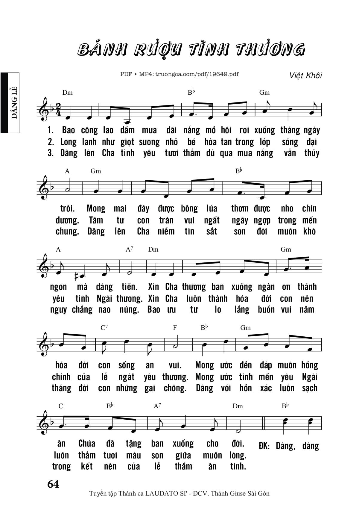 Dâng dâng lên tấm bánh trắng thơm với ly rượu nồng thắm tình thương, dâng dâng lên kiếp sống hôm nay ước mơ làm đẹp khối tình dâng.