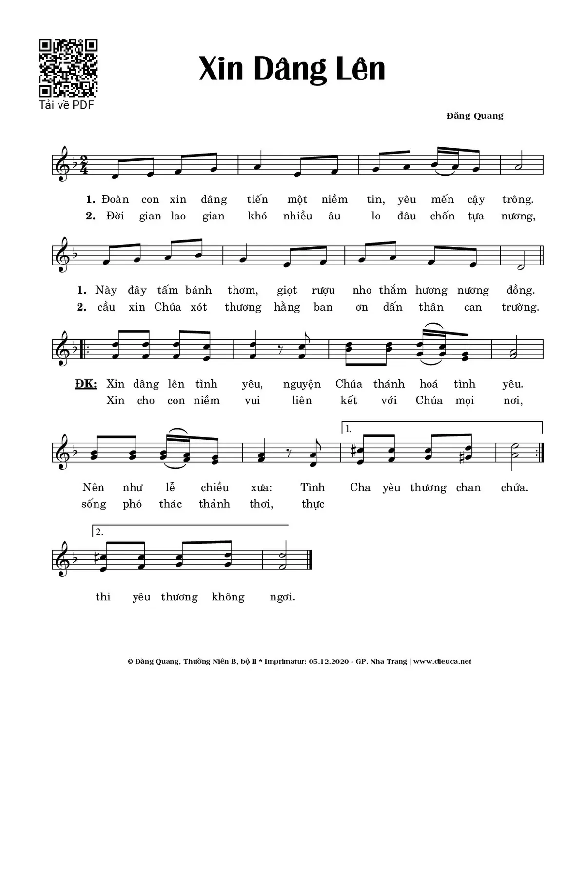 Sheet PDF with the same name Xin Dâng Lên: