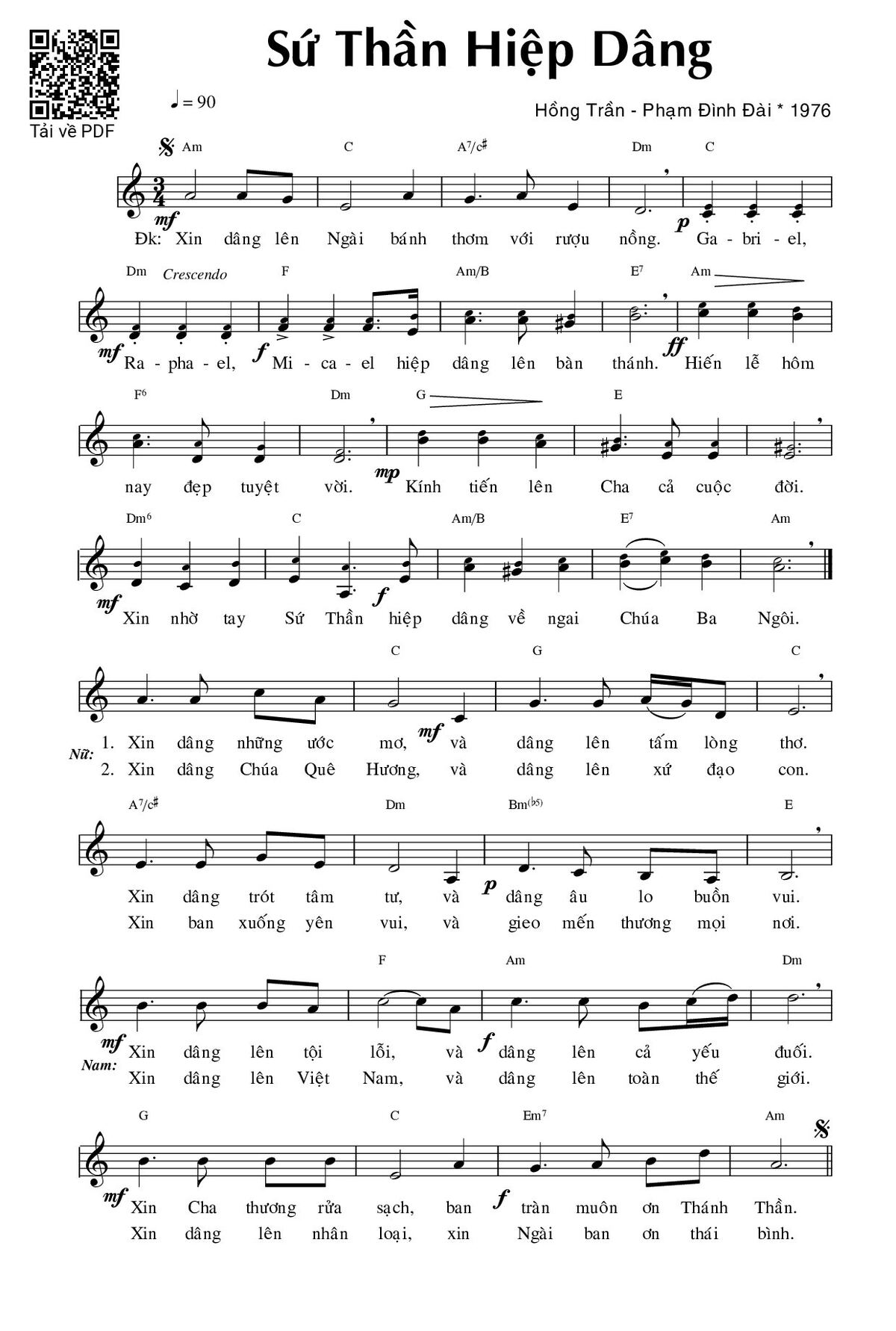 Transposition is the process of moving a song's melody and chords up or down in pitch by a constant interval. The direction of the transposition tool is indicated by a plus (+) sign for up and a minus (-) sign for down. Hover mouse over chords signs to see the chords chart of Sứ thần hiệp dâng song.