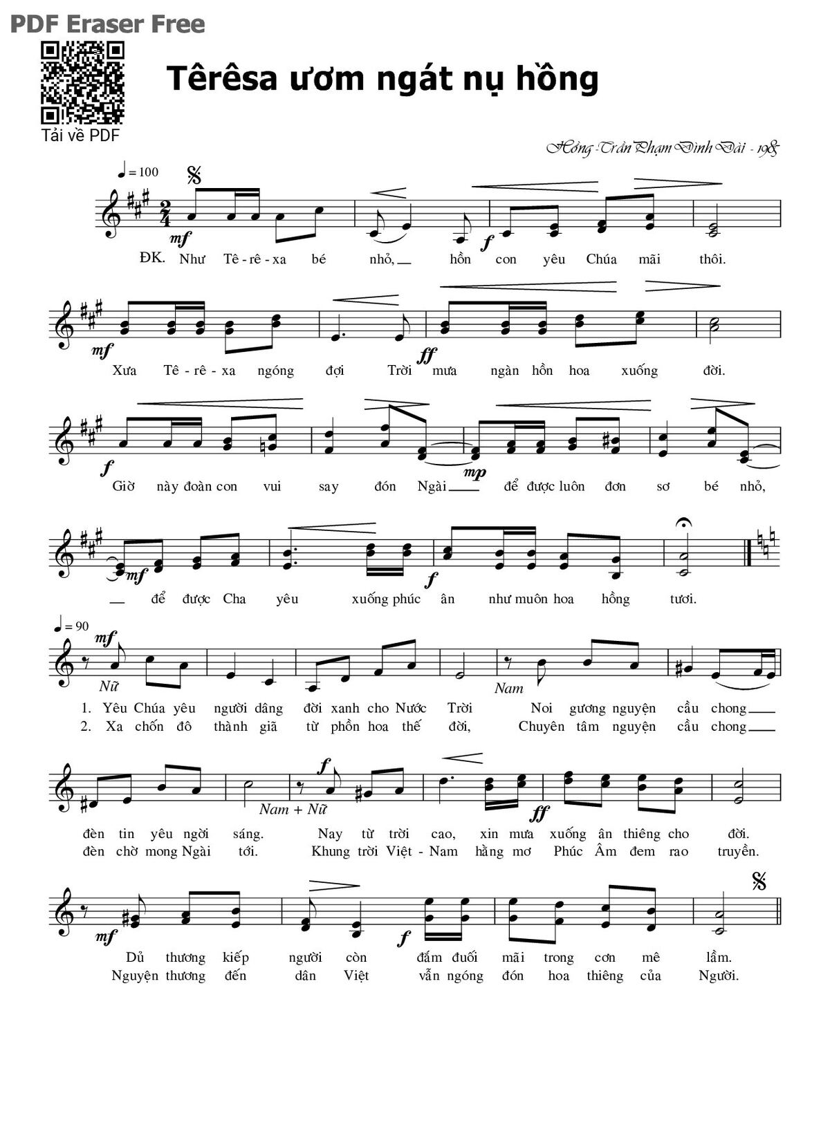 Page 1 of Sheet music PDF Têrêsa ươm ngát nụ hồng - Phạm Đình Đài