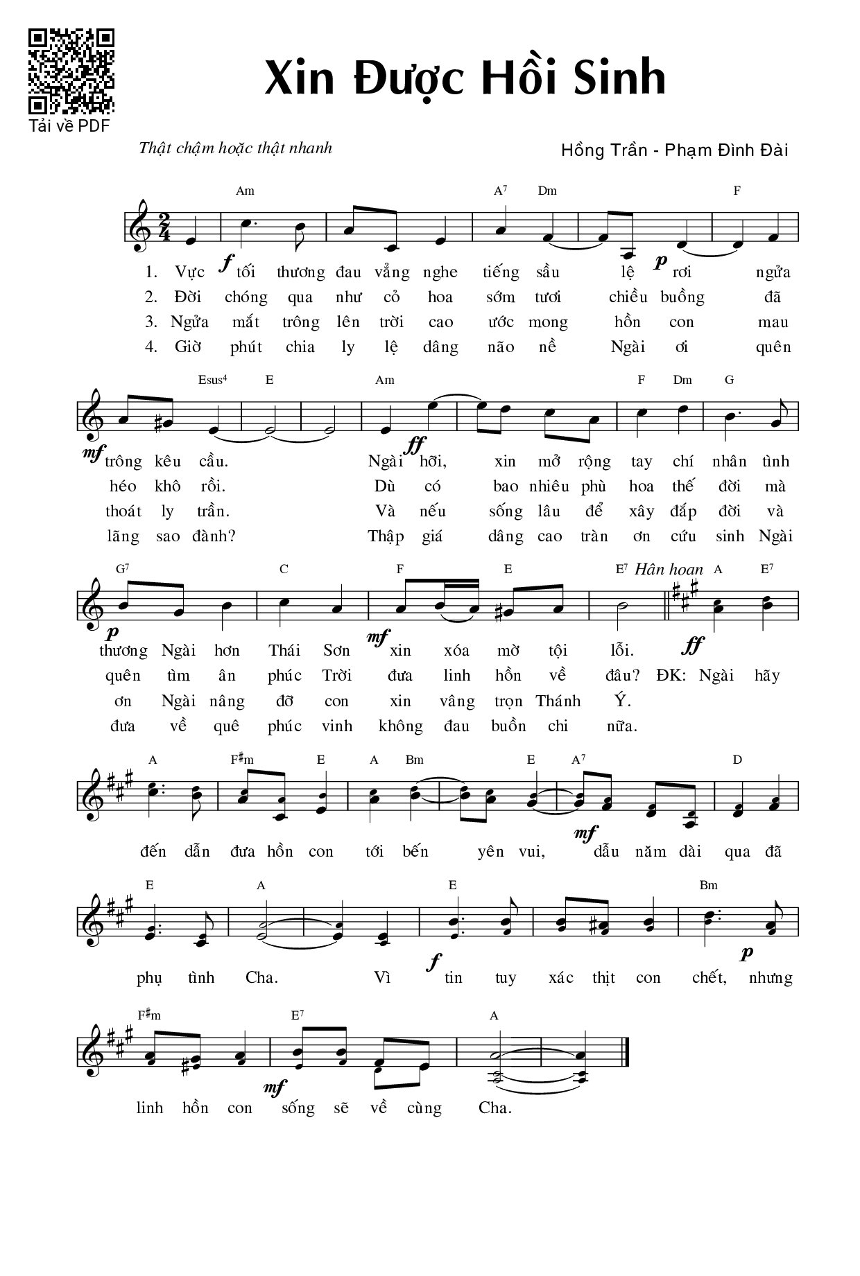 Page 1 of Sheet music PDF Xin được hồi sinh - Phạm Đình Đài