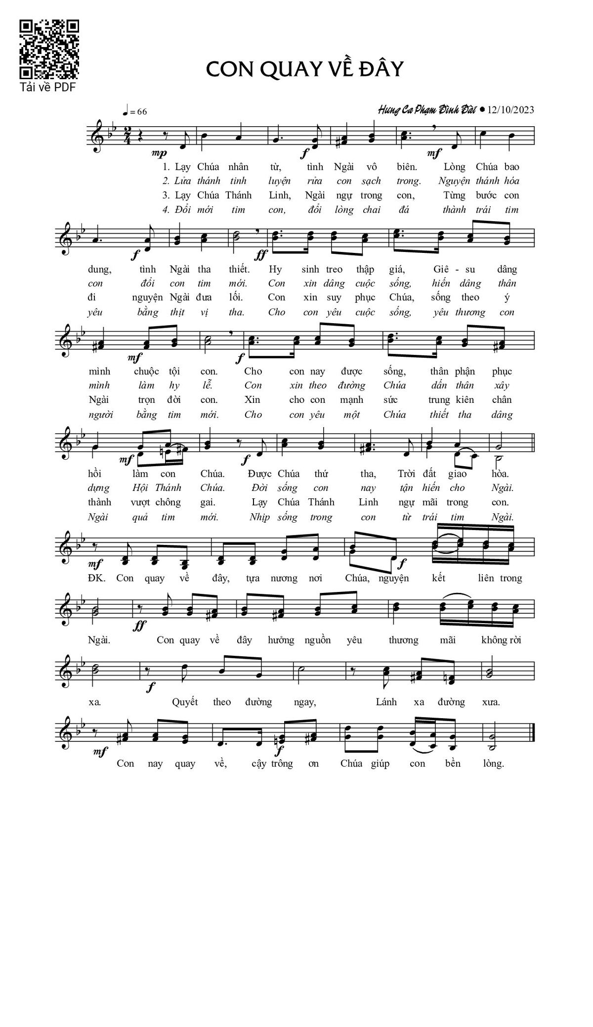 Page 1 of Sheet music PDF Con quay về đây - Phạm Đình Đài