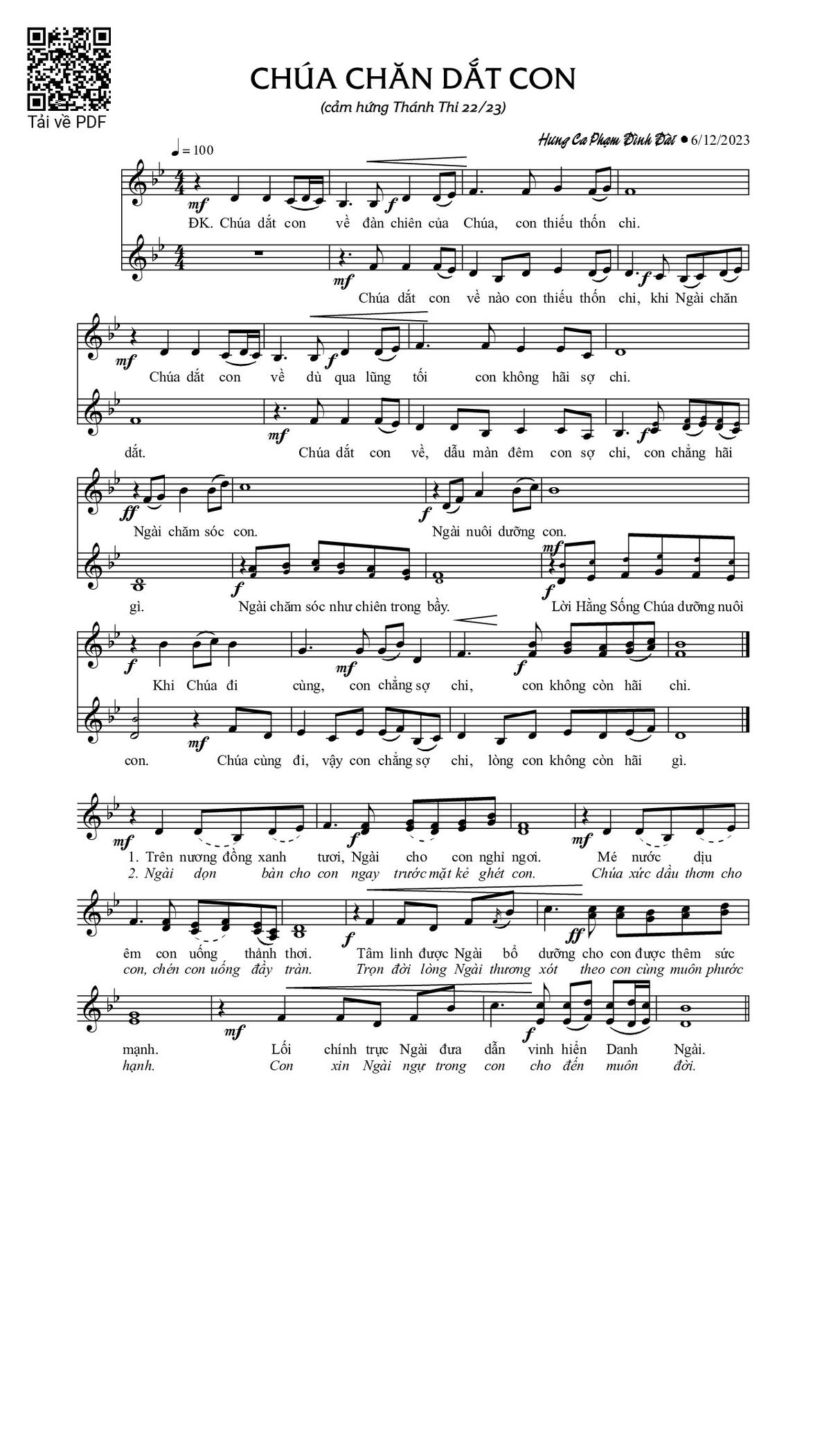 Page 1 of Sheet music PDF Chúa chăn dắt con - Phạm Đình Đài