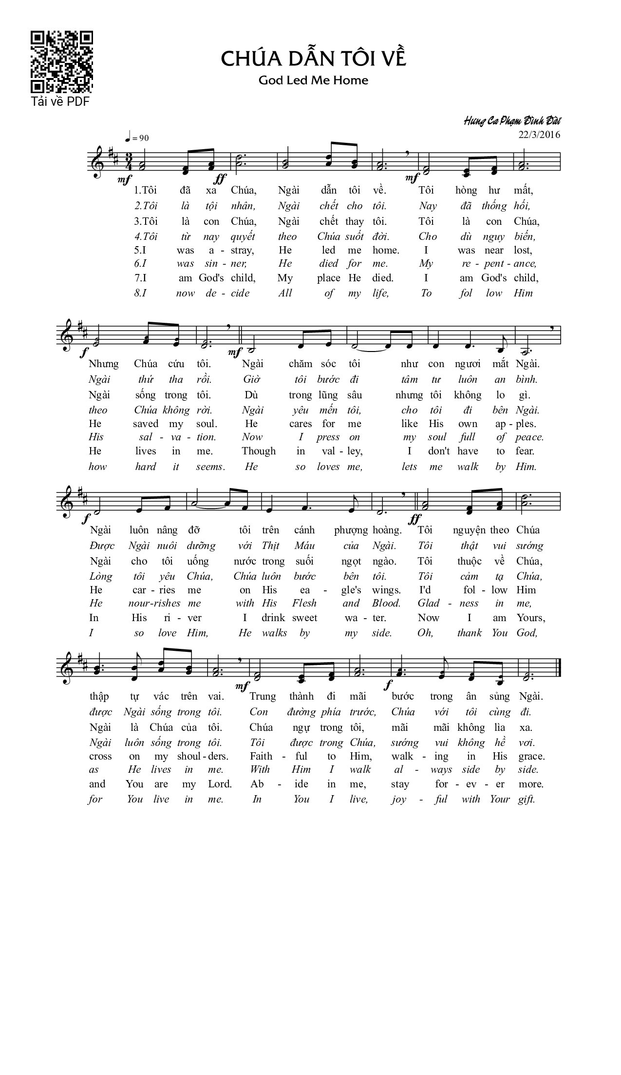Page 1 of Sheet music PDF Chúa dẫn tôi về - Phạm Đình Đài