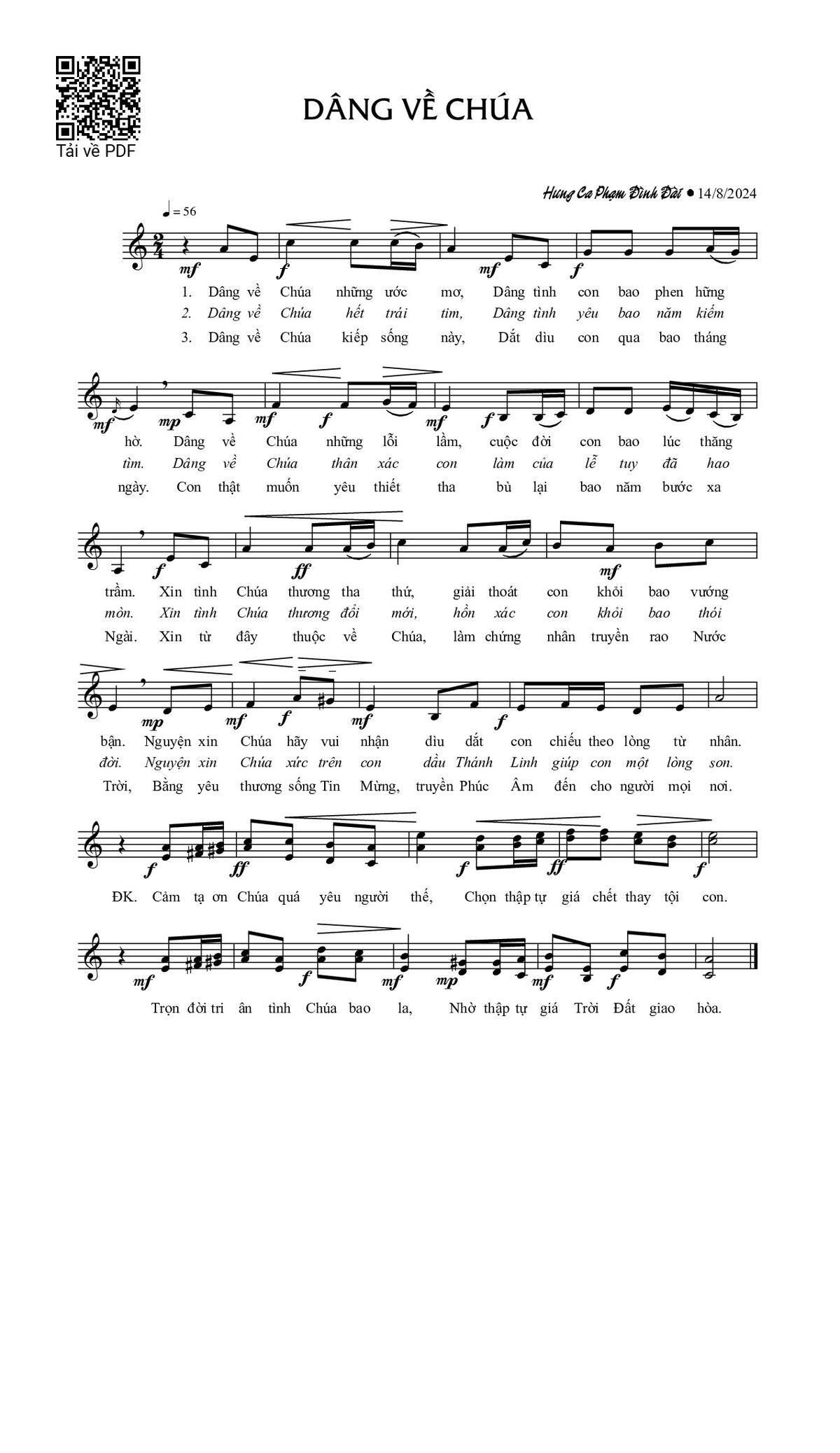 Page 1 of Sheet music PDF Dâng về Chúa - Phạm Đình Đài