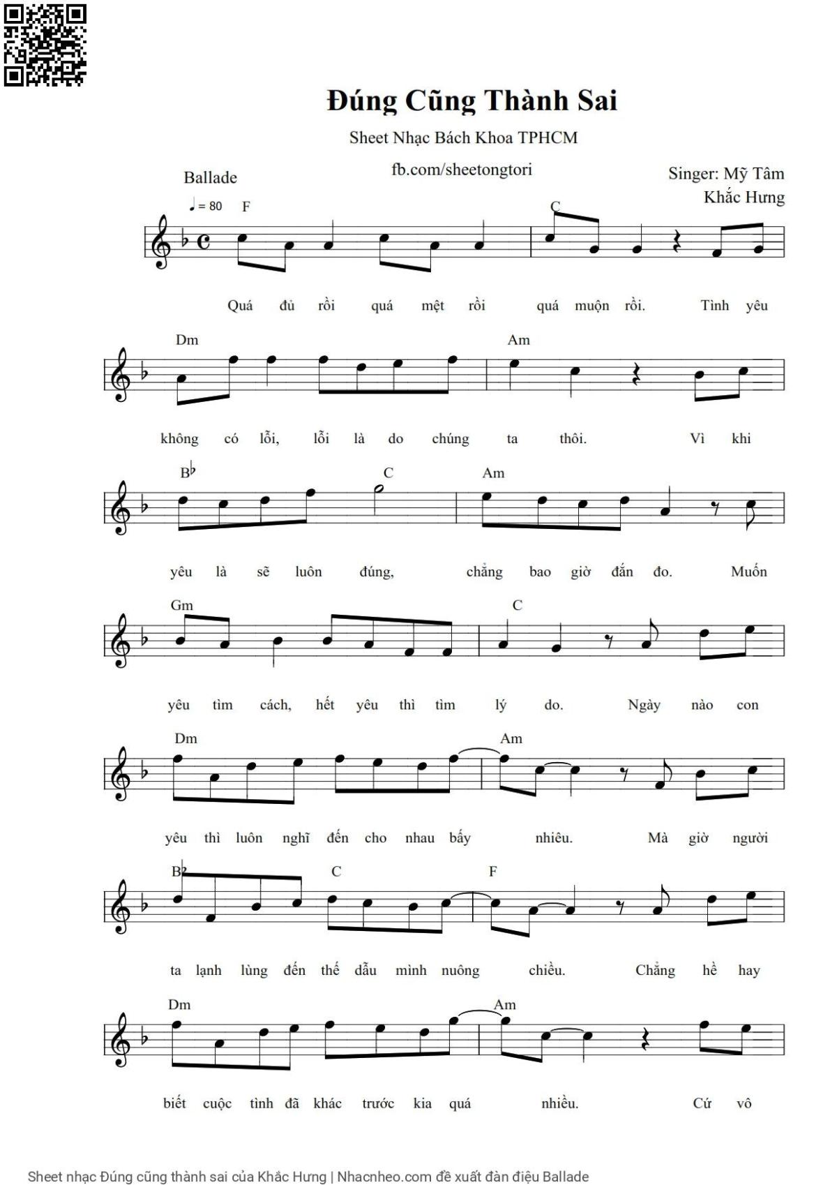 Khắc Hưng Quá đủ rồi quá mệt rồi quá muộn rồi [PDF] [Sheet] [Lyrics] [Mp4/Midi]