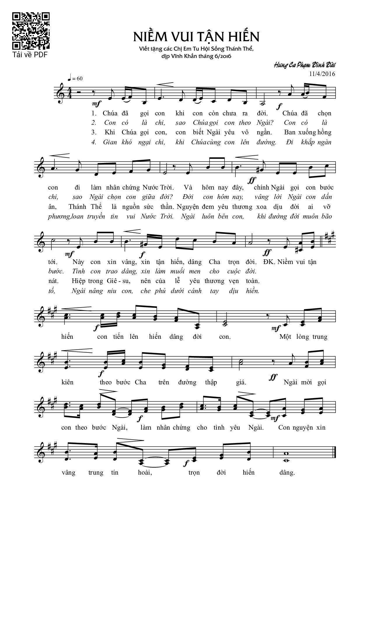 Page 1 of Sheet music PDF Niềm vui tận hiến - Phạm Đình Đài