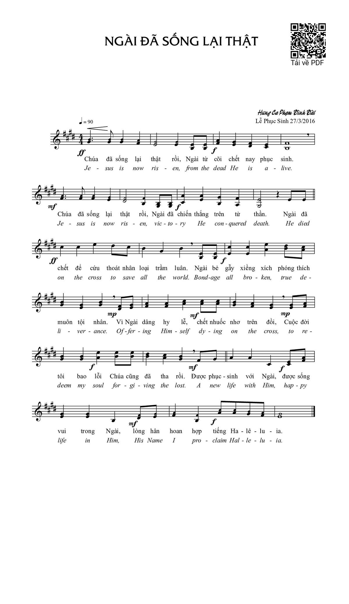 Page 1 of Sheet music PDF Ngài đã sống lại thật - Phạm Đình Đài