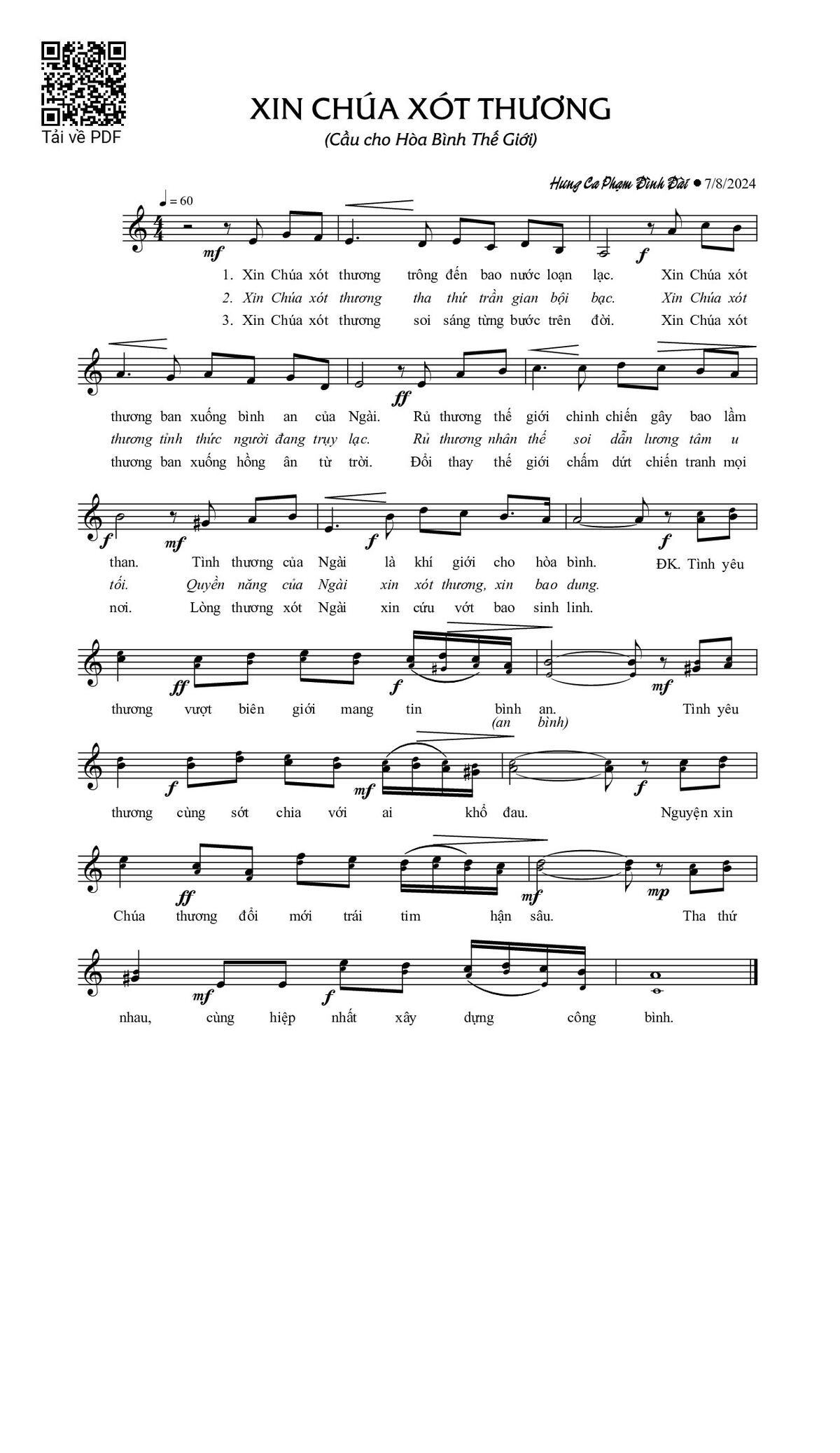 Page 1 of Sheet music PDF Xin Chúa xót thương - Phạm Đình Đài