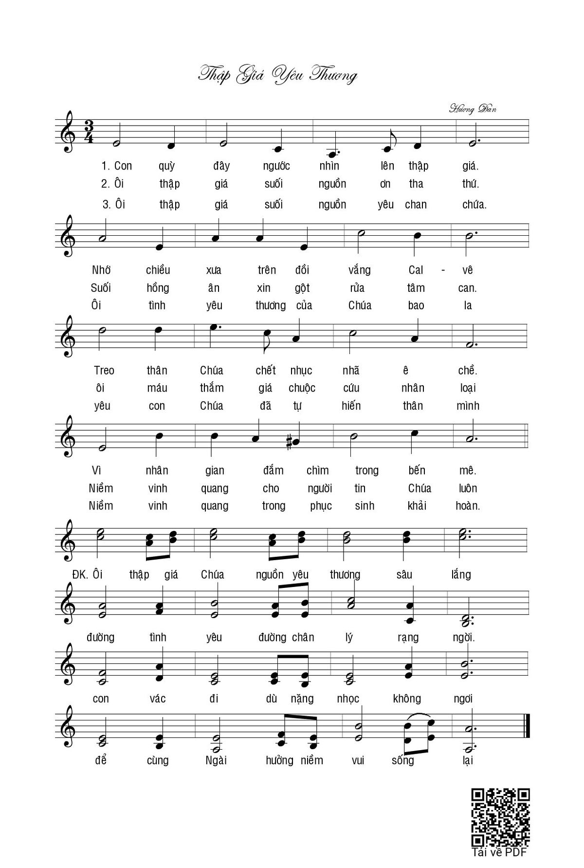 Sheet music Thập Giá yêu thương by Hương Đan and PDF file was posted here to support you to practice singing perfectly. Sheets with notes and chords are for reference only, for non-commercial purposes only, not involved with earning money by buying and selling. Copyright is belong to song writer/author and copyright owner. Truongca.com do not own any copyrighted content. You can download the high-quality PDF files which contain staffs by PDF link above.