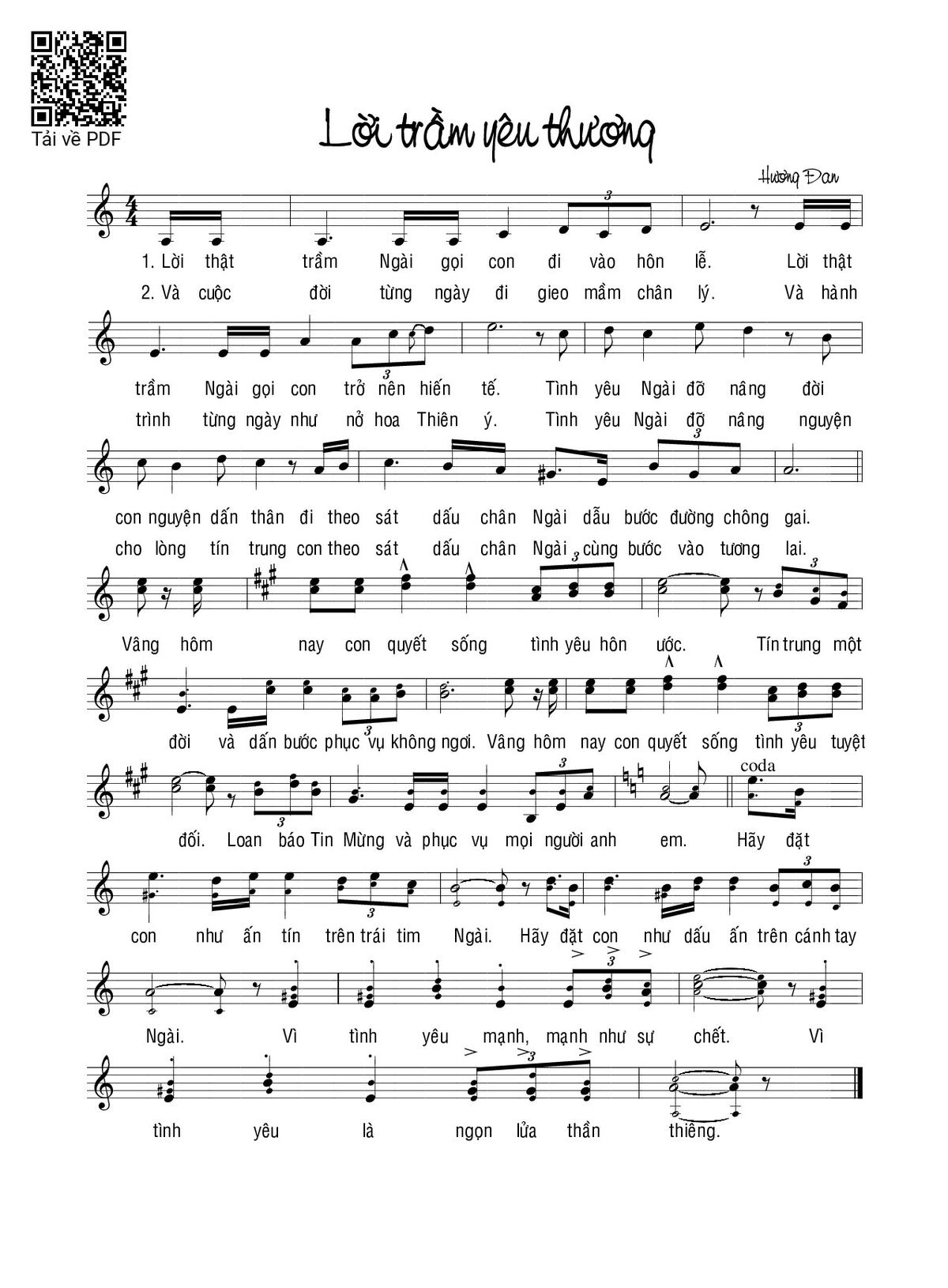 Page 1 of Sheet music PDF Lời trầm yêu thương - Hương Đan