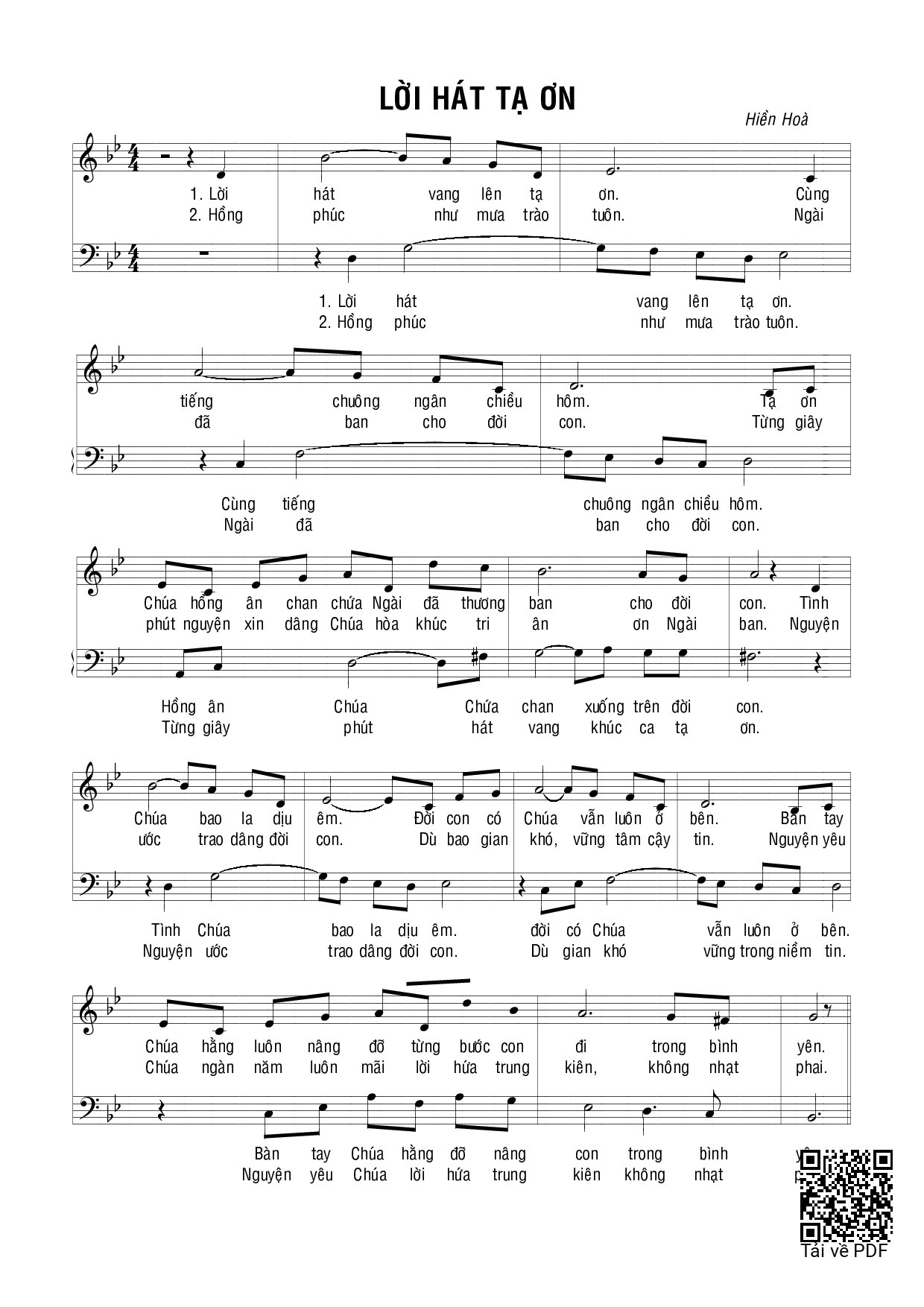 Page 1 of Sheet music PDF Lời hát tạ ơn - Hiền Hòa