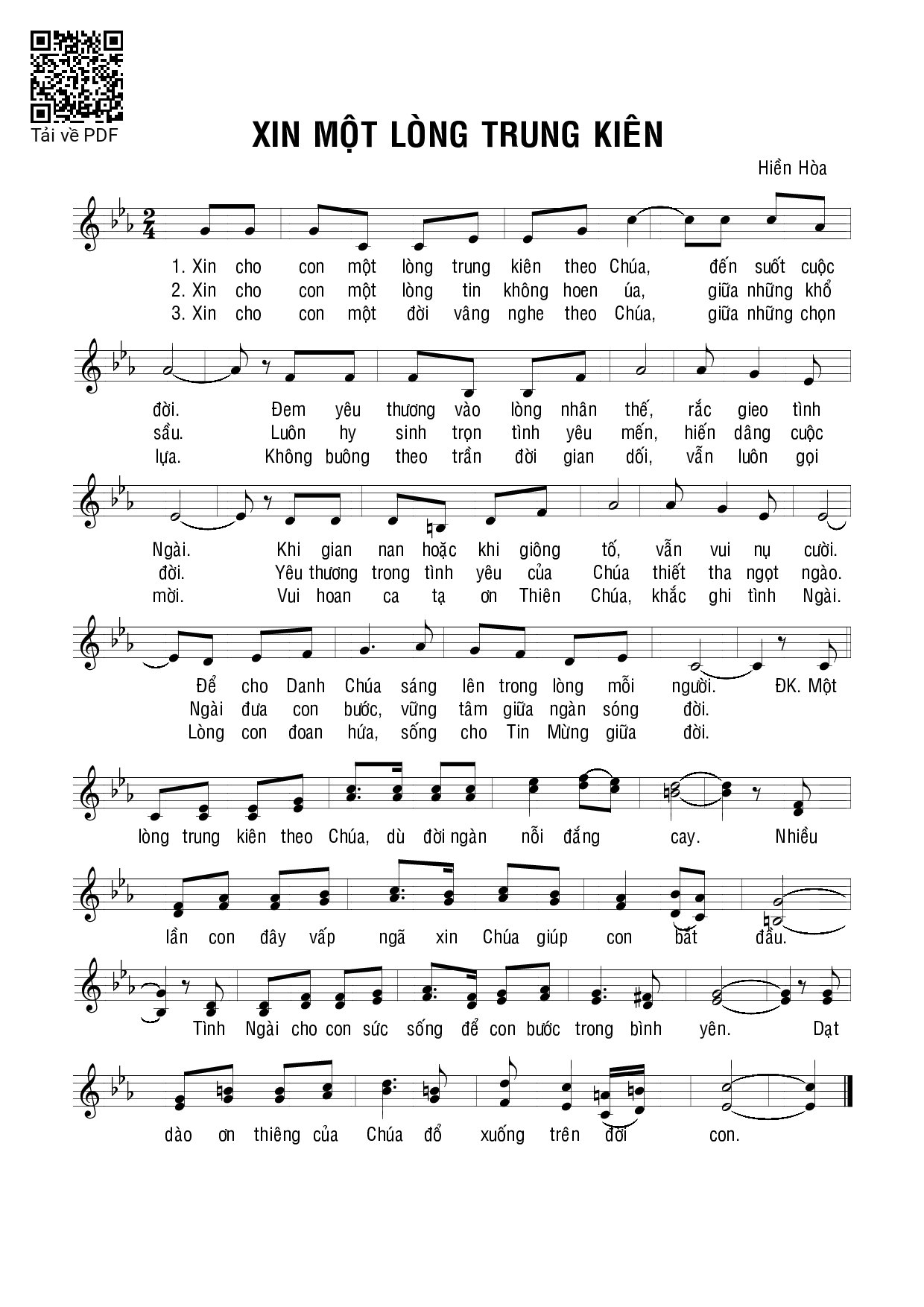 Sheet music Xin một lòng trung kiên by Hiền Hòa and PDF file was posted here to support you to practice singing perfectly. Sheets with notes and chords are for reference only, for non-commercial purposes only, not involved with earning money by buying and selling. Copyright is belong to song writer/author and copyright owner. Truongca.com do not own any copyrighted content. You can download the high-quality PDF files which contain staffs by PDF link above.