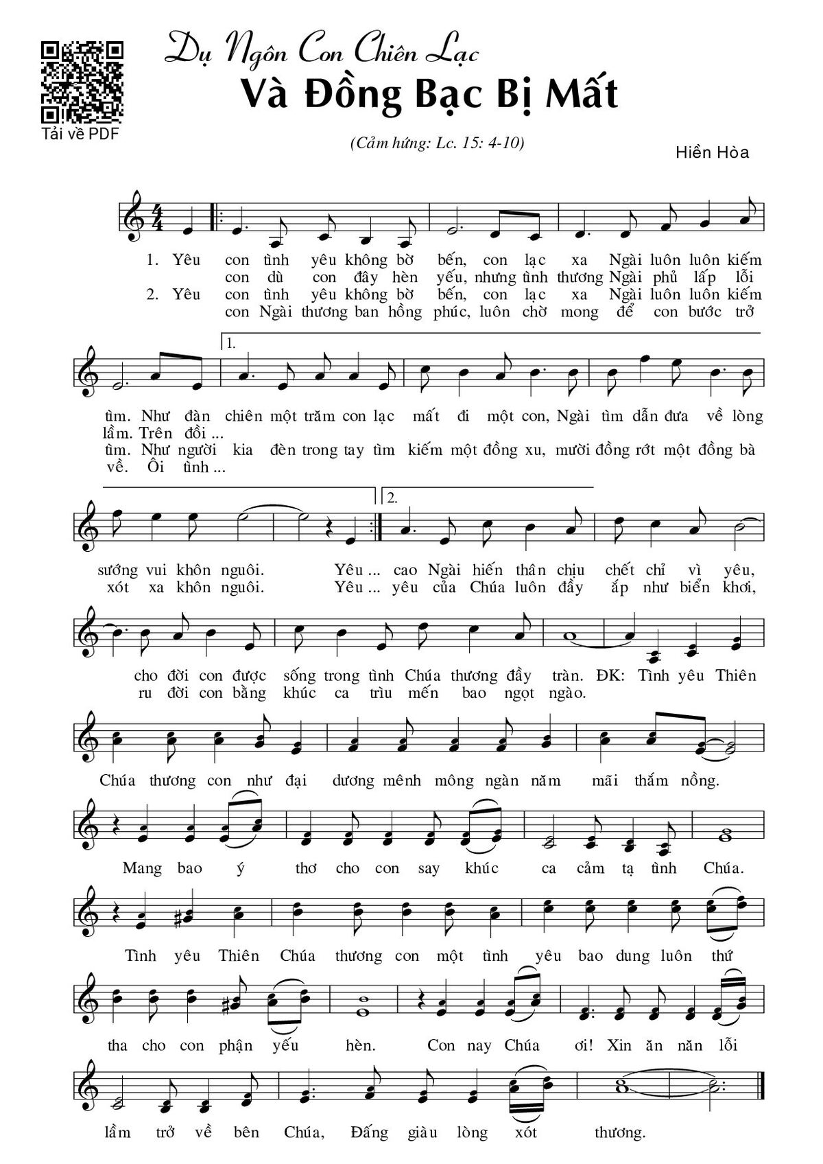 Sheet music Dụ ngôn con chiên lạc by Hiền Hòa and PDF file was posted here to support you to practice singing perfectly. Sheets with notes and chords are for reference only, for non-commercial purposes only, not involved with earning money by buying and selling. Copyright is belong to song writer/author and copyright owner. Truongca.com do not own any copyrighted content. You can download the high-quality PDF files which contain staffs by PDF link above.