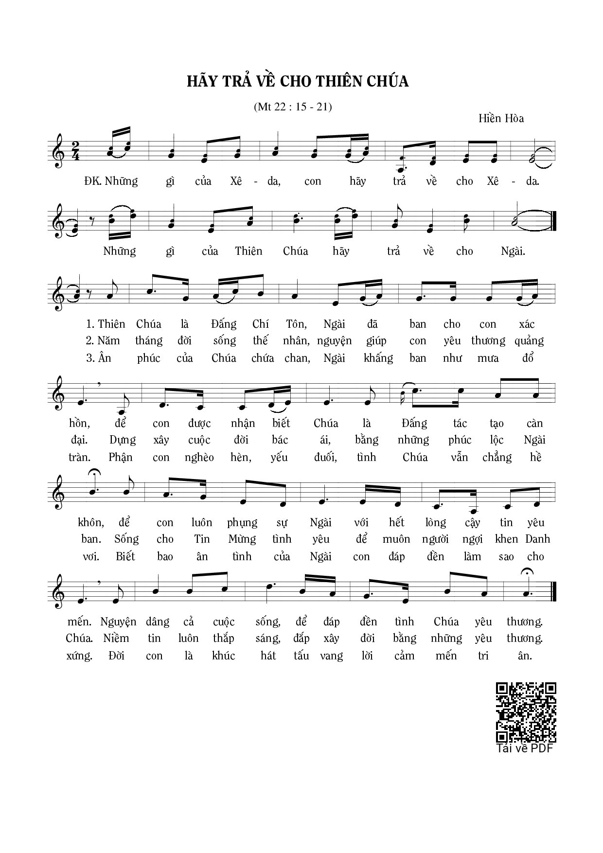 Page 1 of Sheet music PDF Hãy trả về cho Thiên Chúa (Mt. 22) - Hiền Hòa