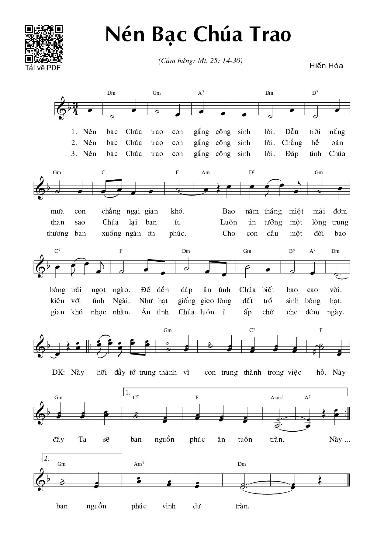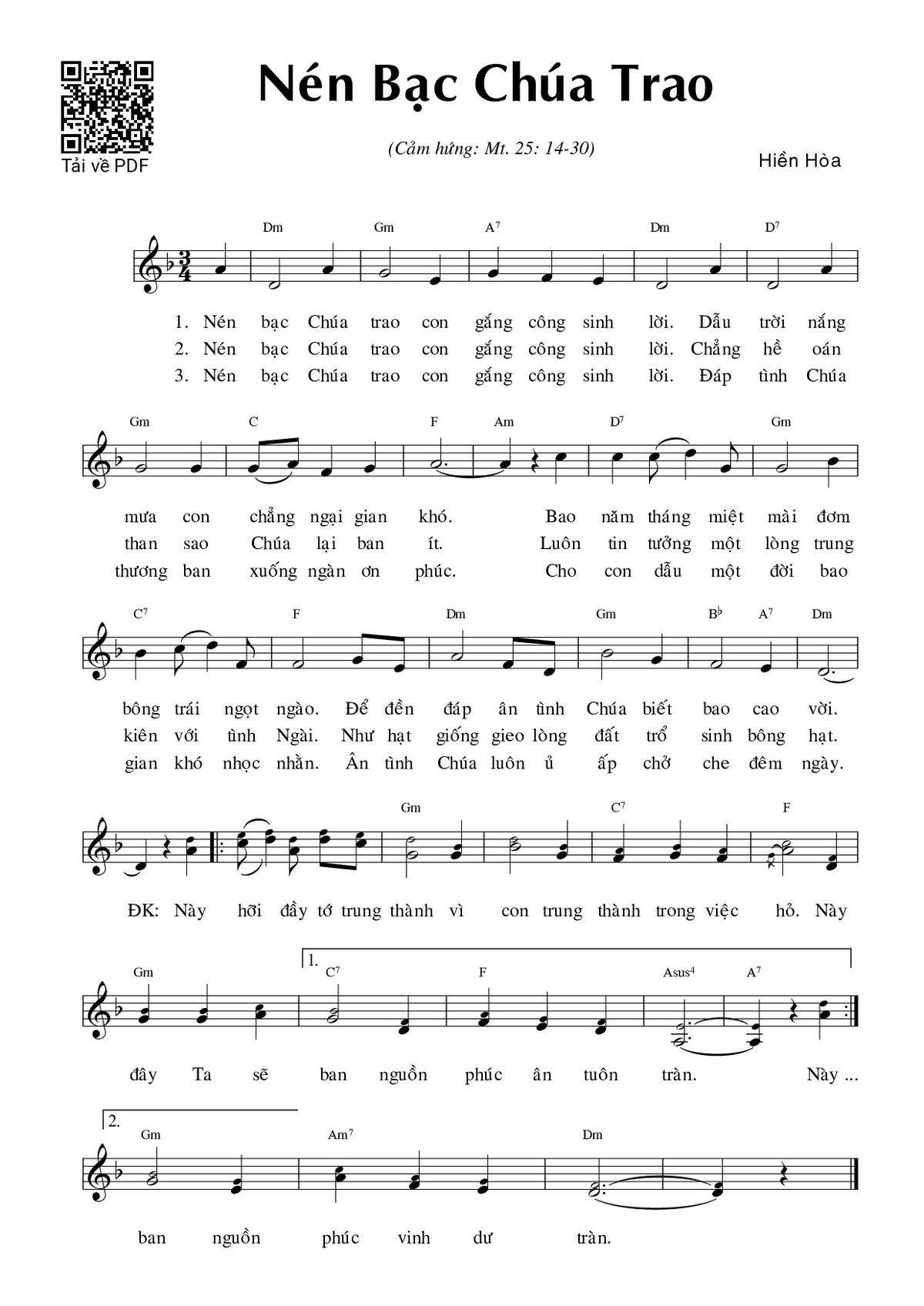 Page 1 of Sheet music PDF Nén bạc Chúa trao (Mt. 25) - Hiền Hòa