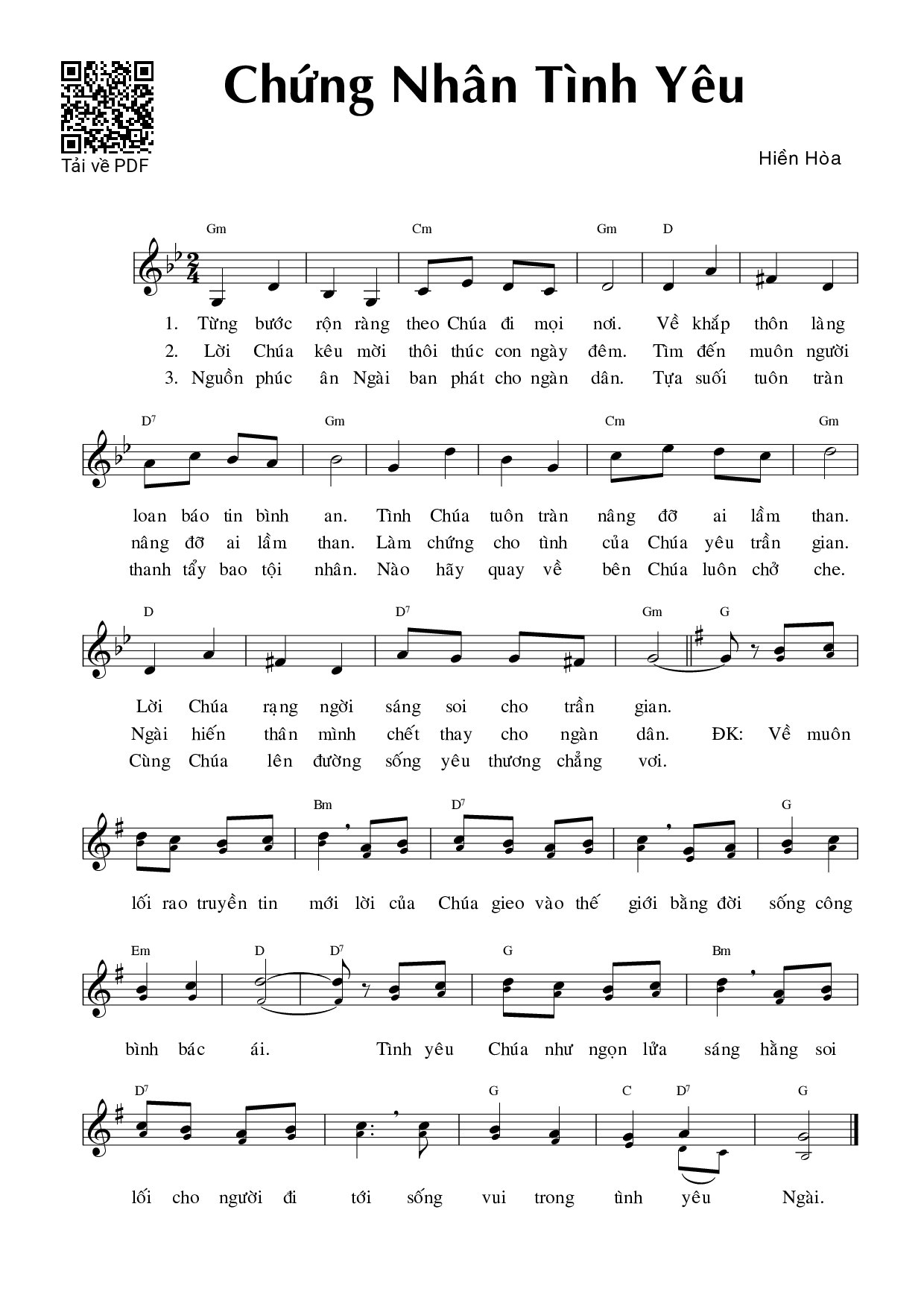 Sheet music Chứng nhân tình yêu by Hiền Hòa and PDF file was posted here to support you to practice singing perfectly. Sheets with notes and chords are for reference only, for non-commercial purposes only, not involved with earning money by buying and selling. Copyright is belong to song writer/author and copyright owner. Truongca.com do not own any copyrighted content. You can download the high-quality PDF files which contain staffs by PDF link above.