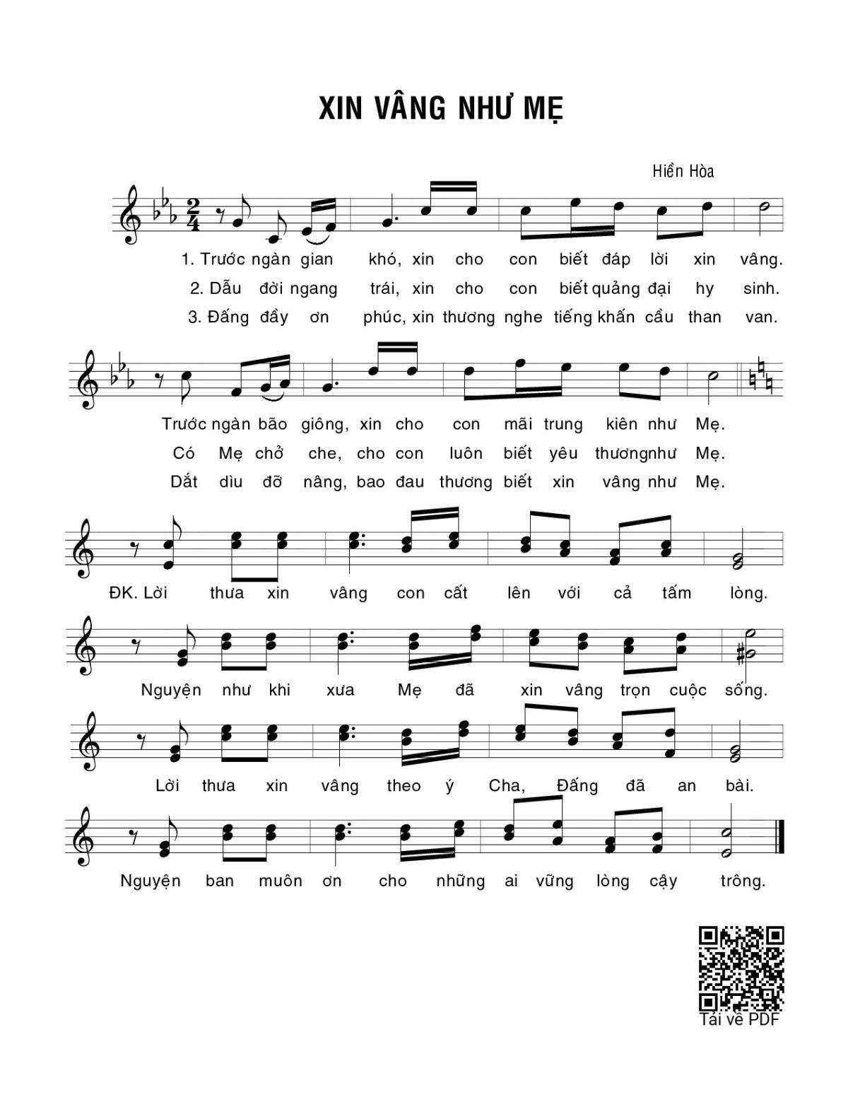 Sheet Xin vâng như Mẹ PDF (Hiền Hòa), chords