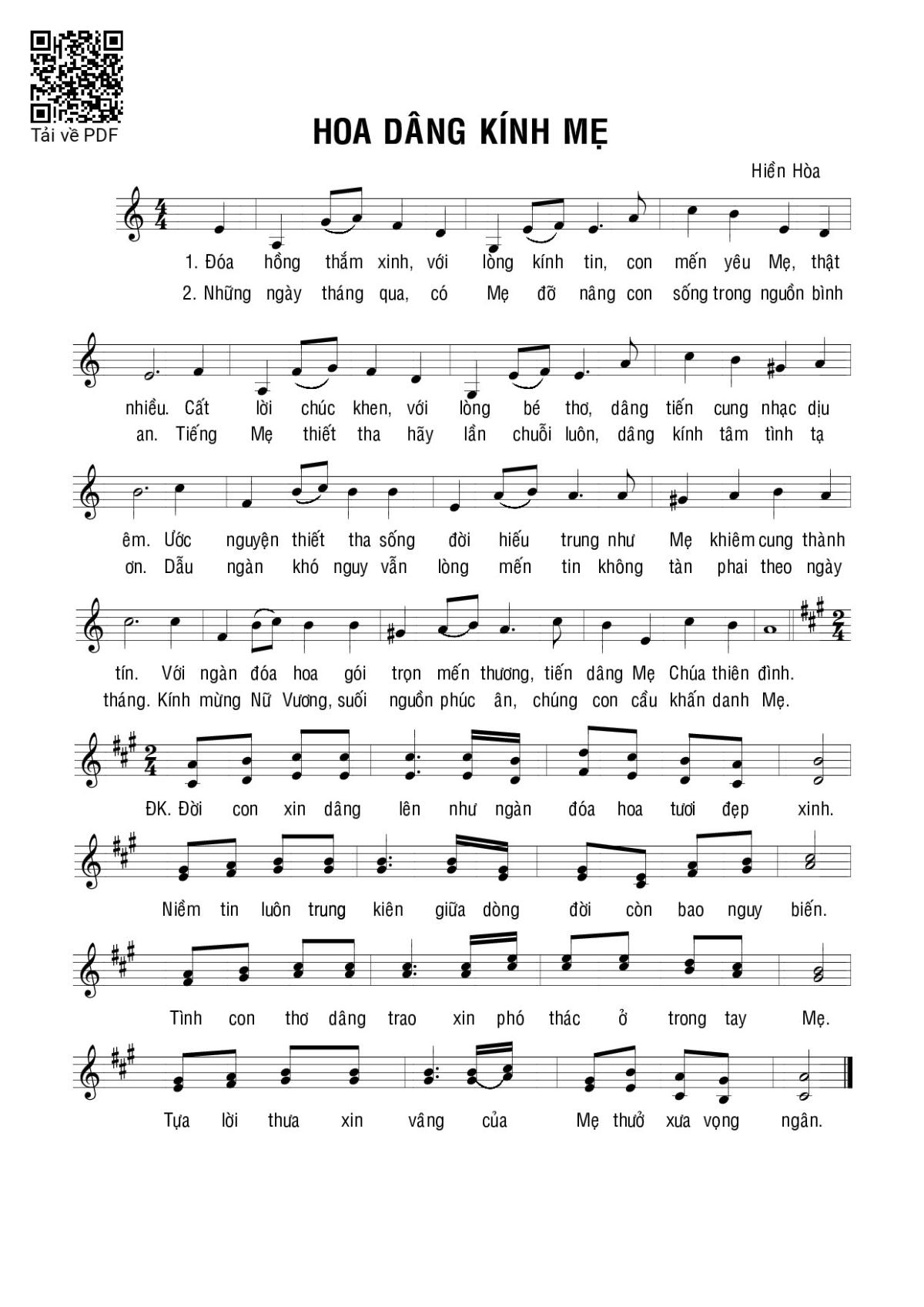 Page 1 of Sheet music PDF Hoa dâng kính Mẹ - Hiền Hòa