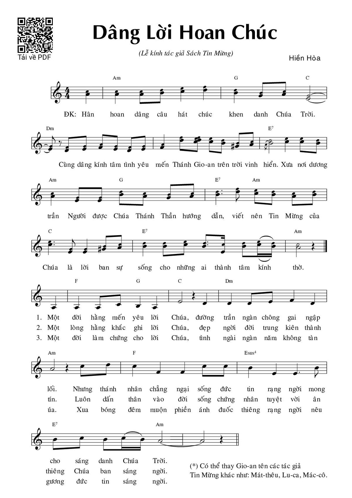 Page 1 of Sheet music PDF Dâng lời hoan chúc - Hiền Hòa