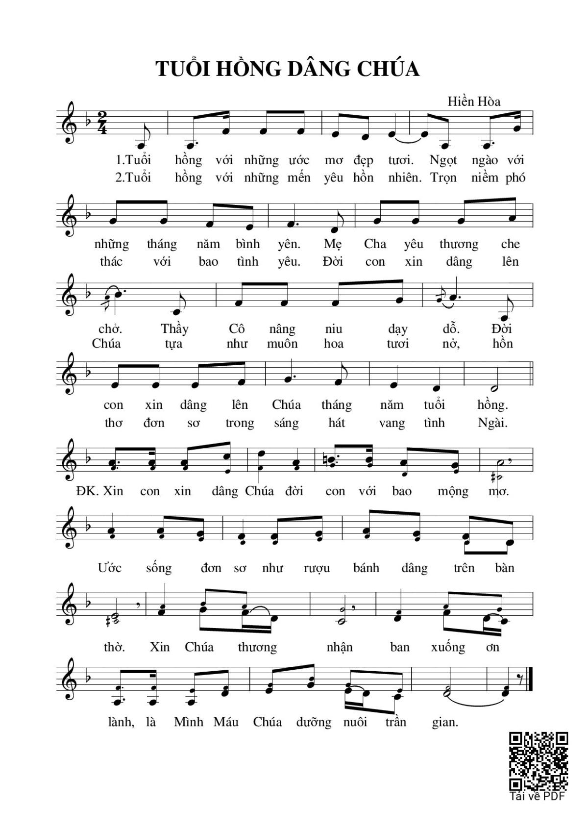 Page 1 of Sheet music PDF Tuổi hồng dâng Chúa - Hiền Hòa