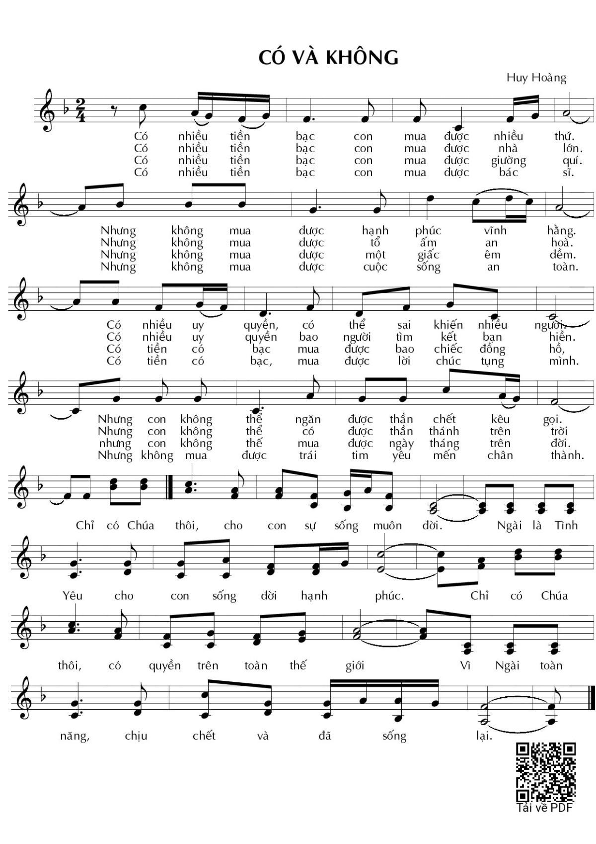 The Videos/audios Có Và Không by Huy Hoàng were embed from Youtube, Musescore or the other 3rd links. Videos are subject to 3rd's copyright control and may be removed by YouTube's copyright rules and 3rd's policies or maybe included advertisements. If you cannot access to these songs, this mean that have been removed.
