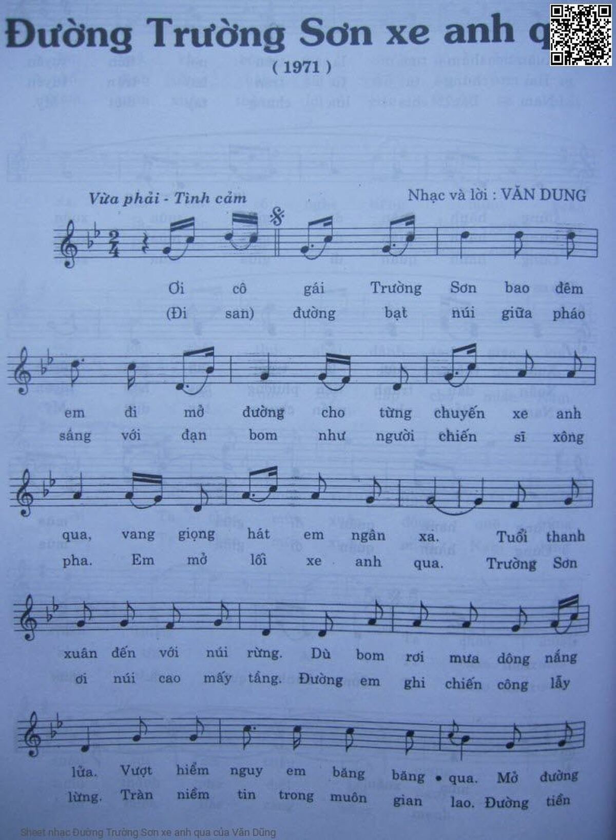 Văn Dũng Ơi cô gái Trường Sơn bao đêm em đi mở đường [PDF] [Sheet] [Lyrics] [Mp4/Midi]