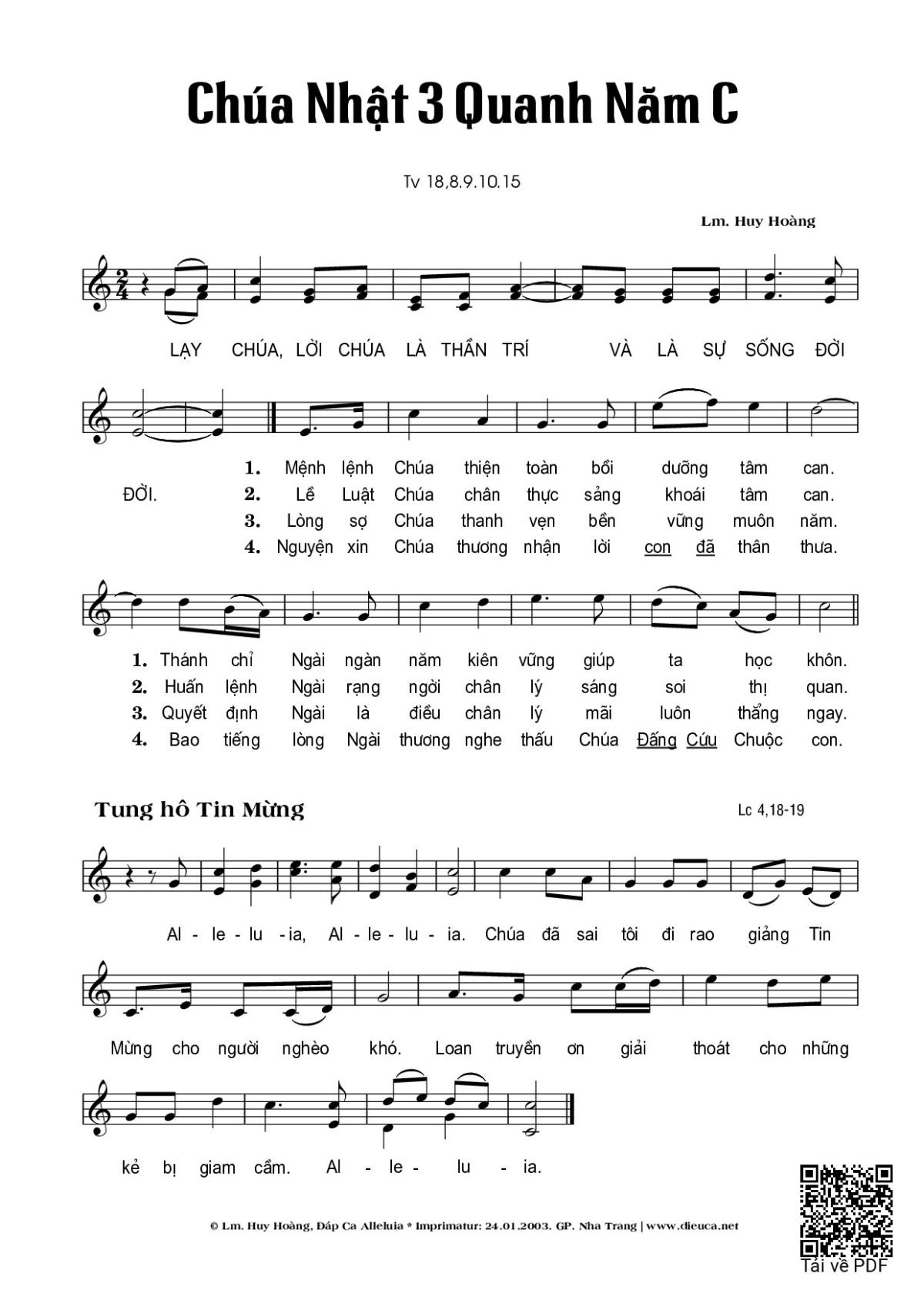 Category 🌾 Nhạc Thánh Ca, 🌾 Thánh Vịnh - Đáp Ca, 🌾 Thánh ca Imprimatur, ⛪ Chúa Nhật 3C Thường Niên - Thánh Ca Phụng Vụ, 🌾 Thánh Vịnh 18