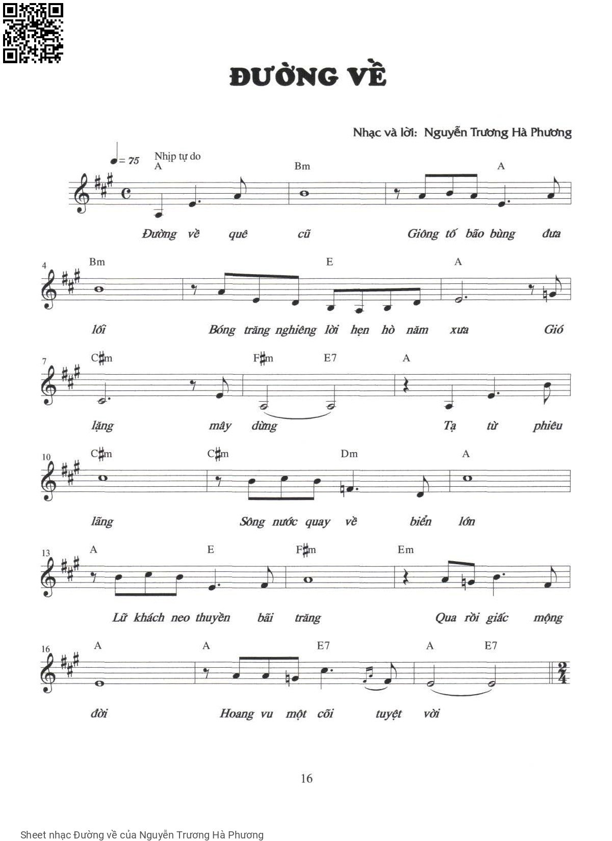 Transposition is the process of moving a song's melody and chords up or down in pitch by a constant interval. The direction of the transposition tool is indicated by a plus (+) sign for up and a minus (-) sign for down. Hover mouse over chords signs to see the chords chart of Đường về song.