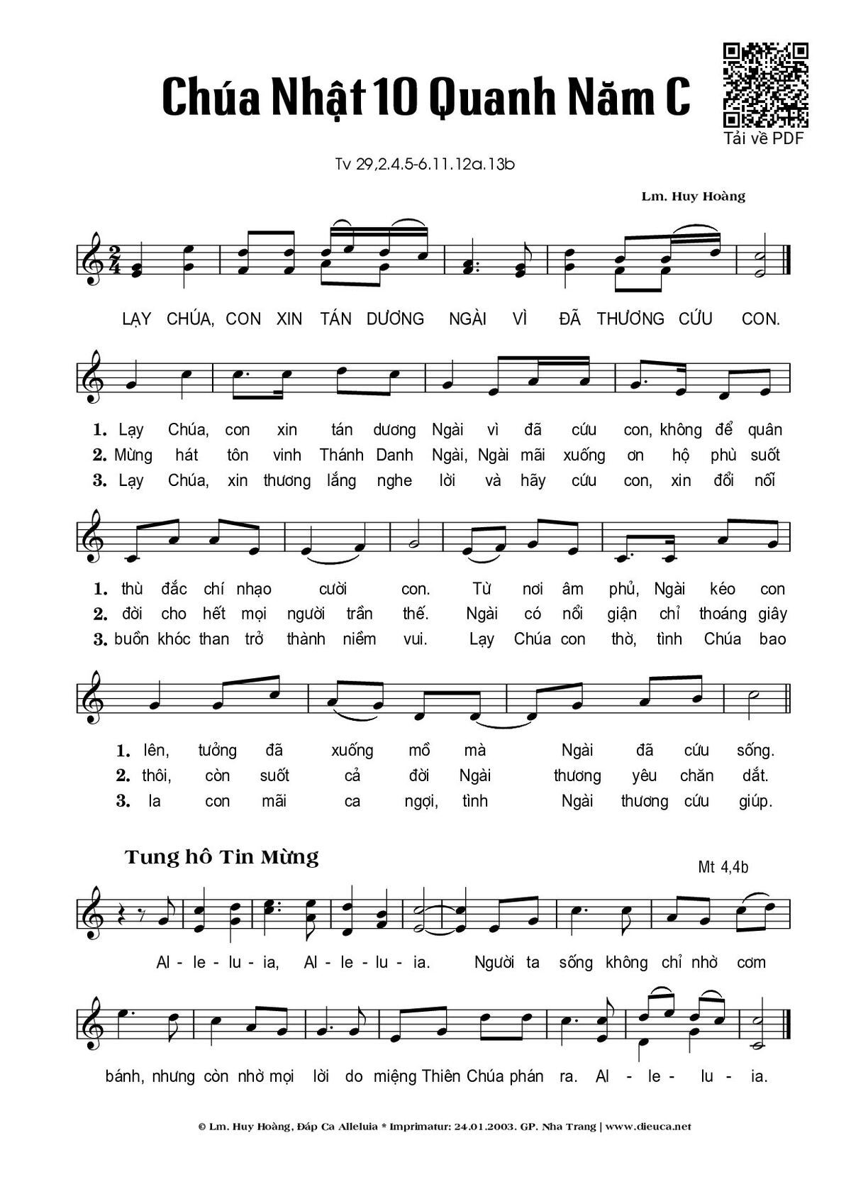 🌾 Imprimatur, Thông tin chuẩn nhận dùng trong phụng vụ Công Giáo: Thánh Vịnh – Đáp Ca. Imprimatur – Gp. Nha Trang: 24.01.2003