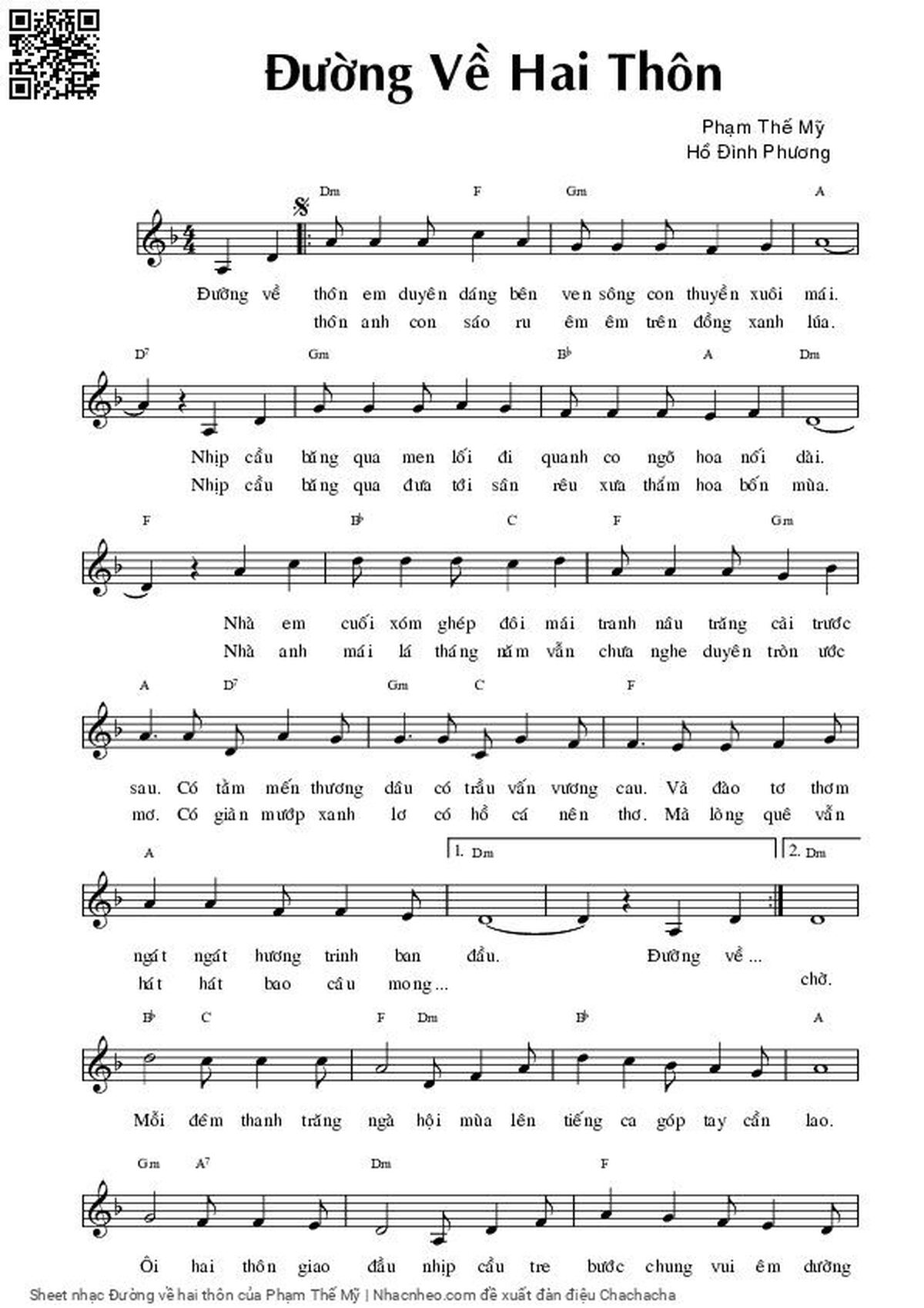 Phạm Thế Mỹ Đường về thôn em duyên dáng bên ven sông con thuyền xuôi mái [PDF] [Sheet] [Lyrics] [Mp4/Midi]