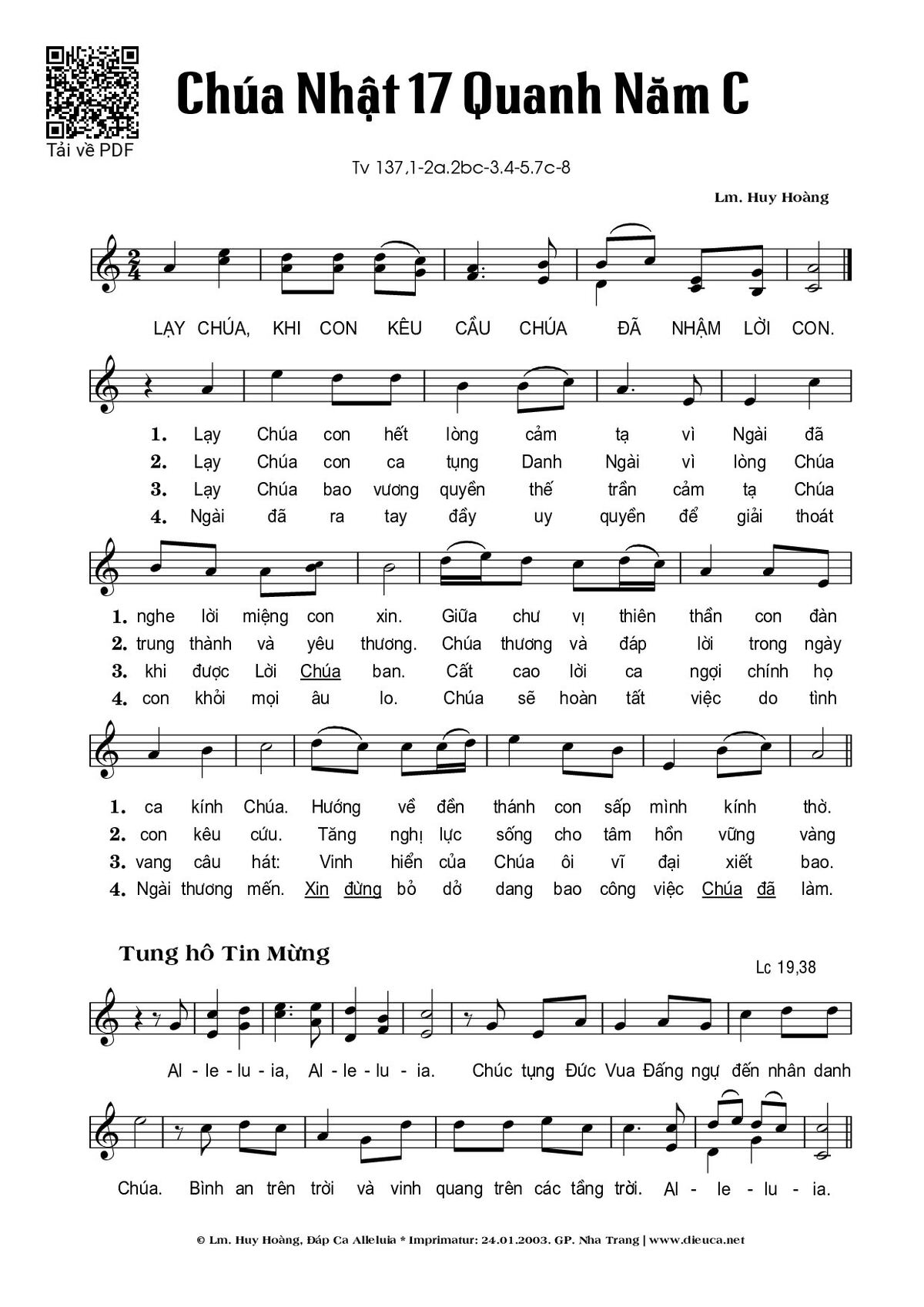 Category 🌾 Nhạc Thánh Ca, 🌾 Thánh Vịnh - Đáp Ca, 🌾 Thánh ca Imprimatur, 🌾 Thánh Vịnh 137, ⛪ Chúa Nhật 17 Thường Niên C