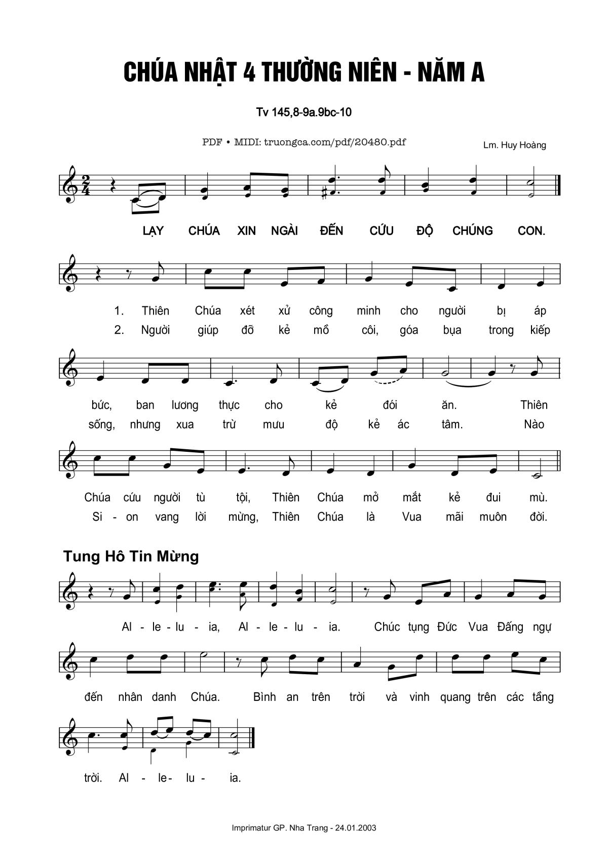 🌾 Imprimatur, Thông tin chuẩn nhận dùng trong phụng vụ Công Giáo: Thánh Vịnh – Đáp Ca. Imprimatur – Gp. Nha Trang: 24.01.2003