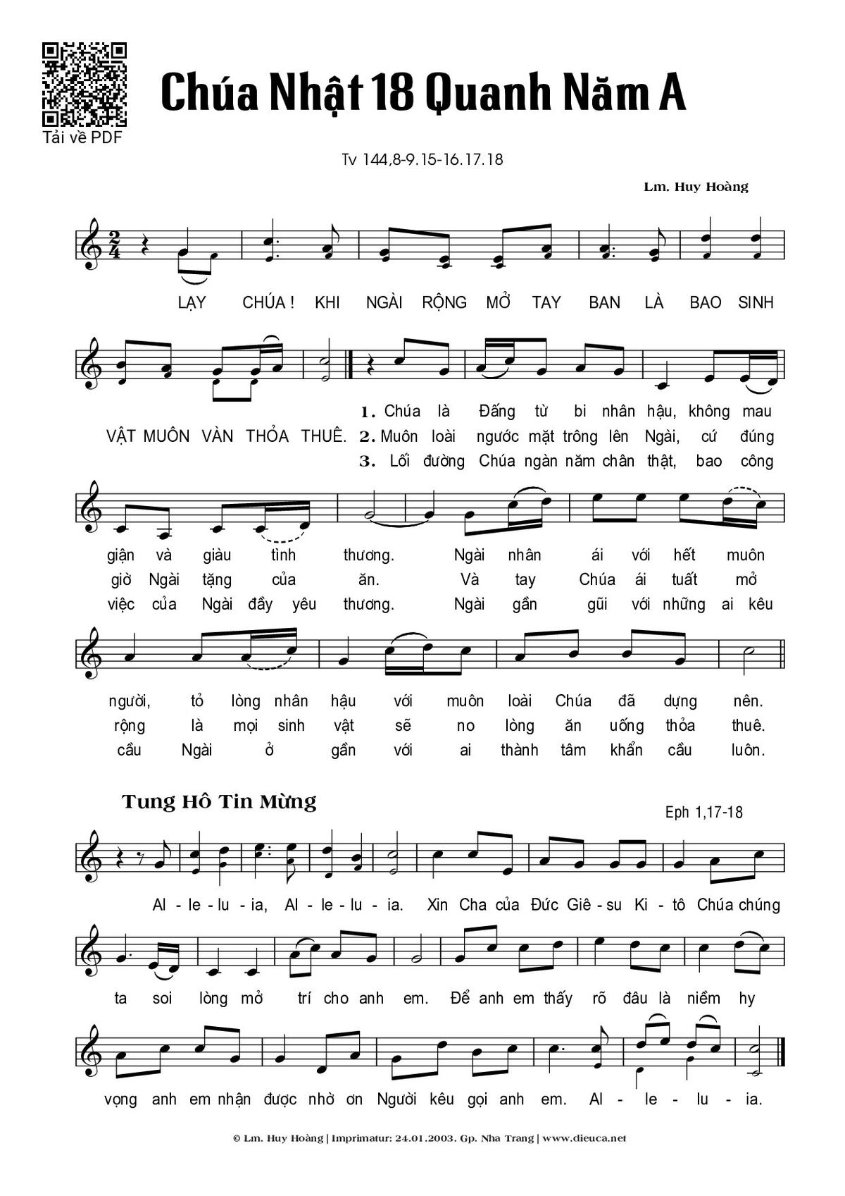 More similar sheets PDF Thánh Vịnh 144, Chúa Nhật 18A Thường Niên: