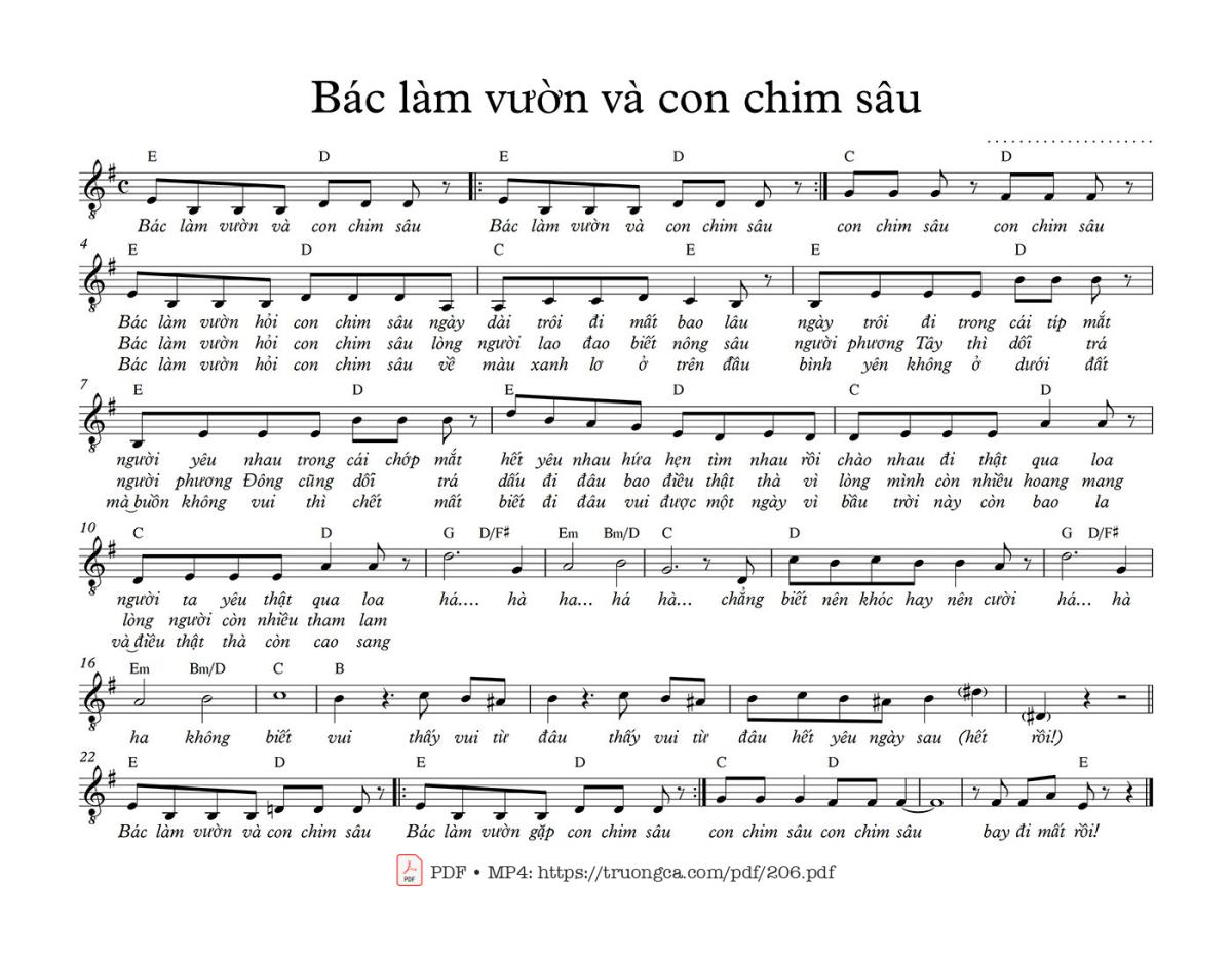 Lê Đức Hùng Bác làm vườn và con chim sâu Bác làm vườn và con chim sâu [PDF] [Sheet] [Lyrics] [Mp4/Midi]
