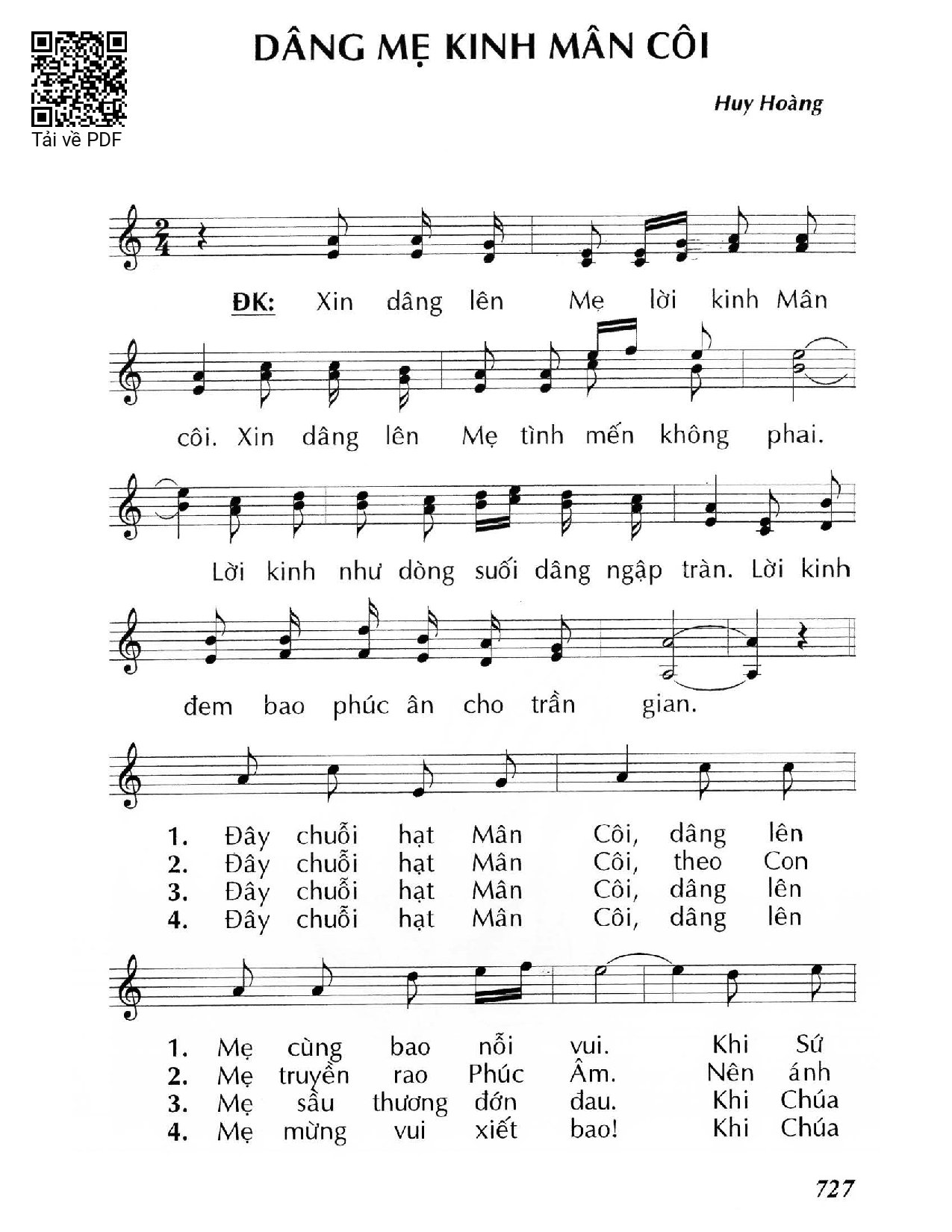 Page 1 of Sheet music PDF Dâng Mẹ kinh Mân Côi - Huy Hoàng