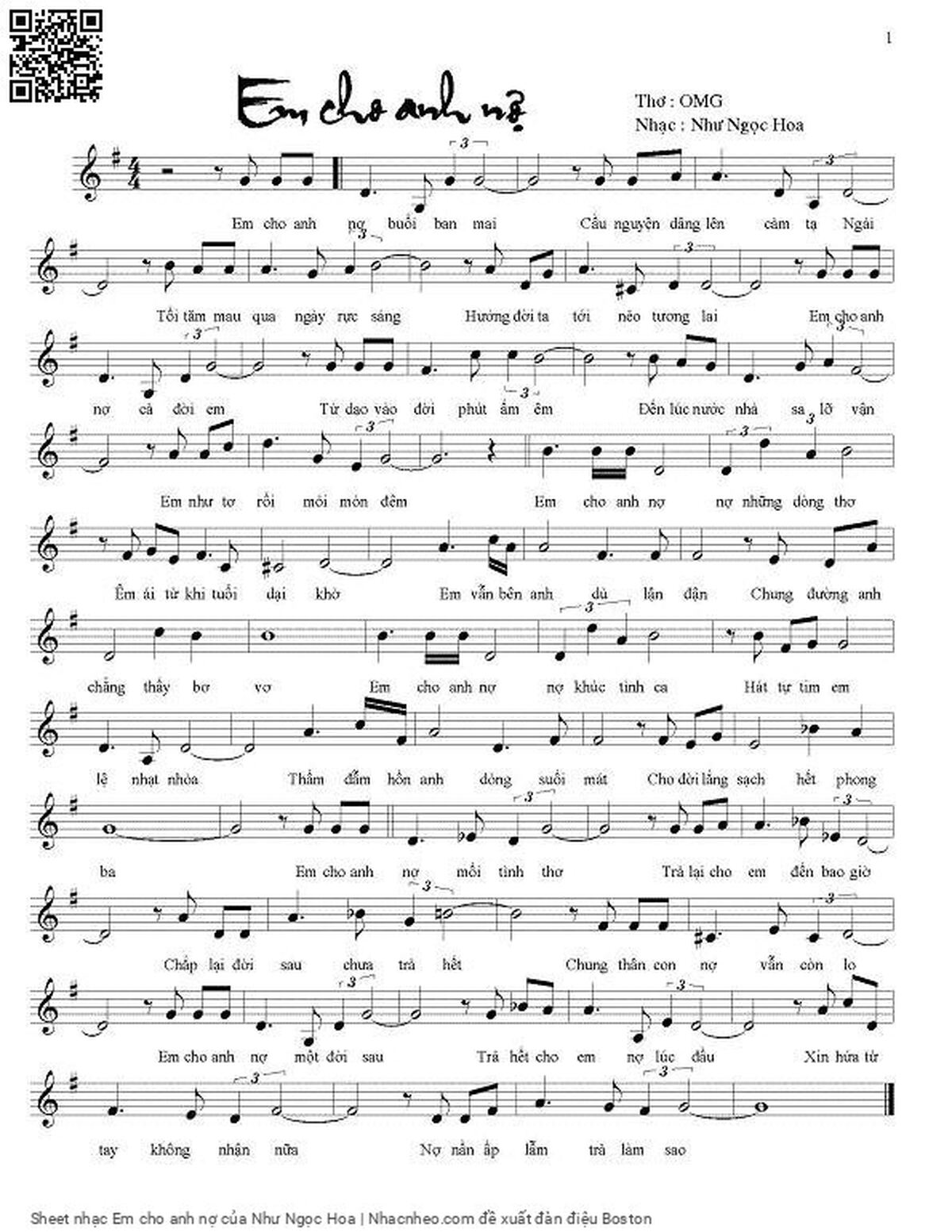 Như Ngọc Hoa Em cho anh nợ buổi ban mai Cầu nguyện dâng lên cảm tạ Ngài [PDF] [Sheet] [Lyrics] [Mp4/Midi]