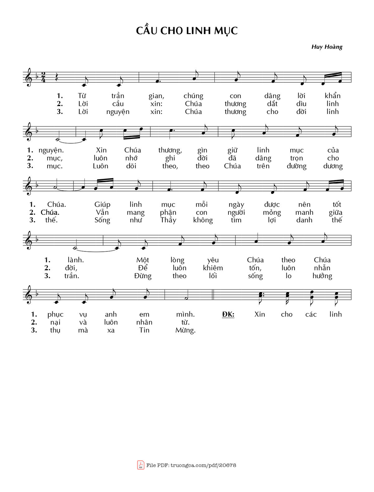 Sheet PDF with the same name Cầu cho Linh mục: