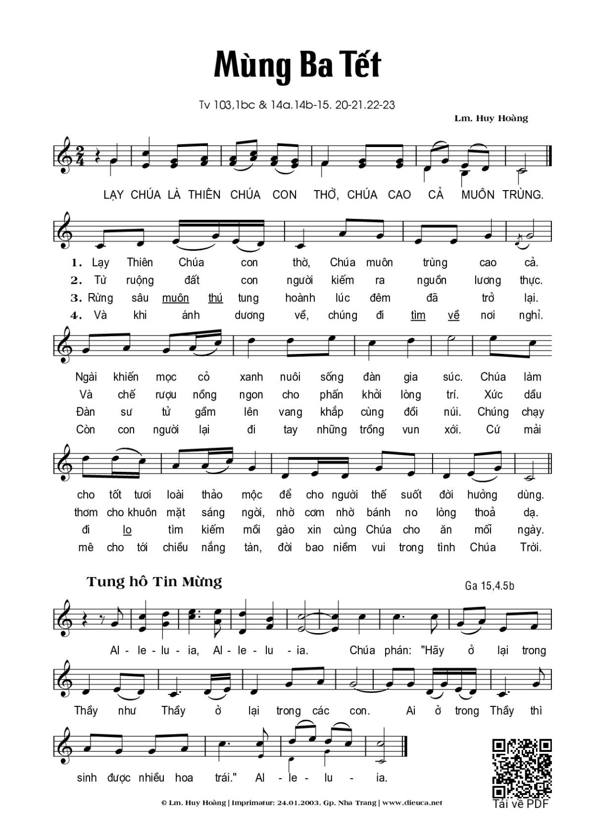 Sheet PDF with the same name Mùng 3 Tết (Thánh Vịnh 103):