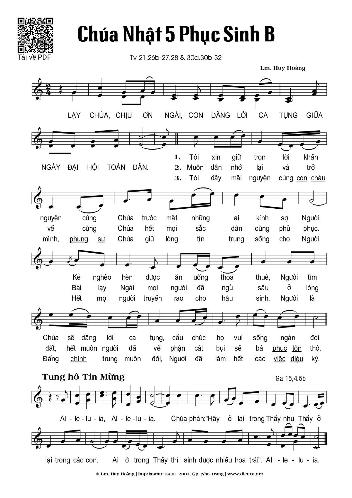 Page 1 of Sheet music PDF Chúa Nhật 5B Phục Sinh (Thánh Vịnh 21) - Huy Hoàng