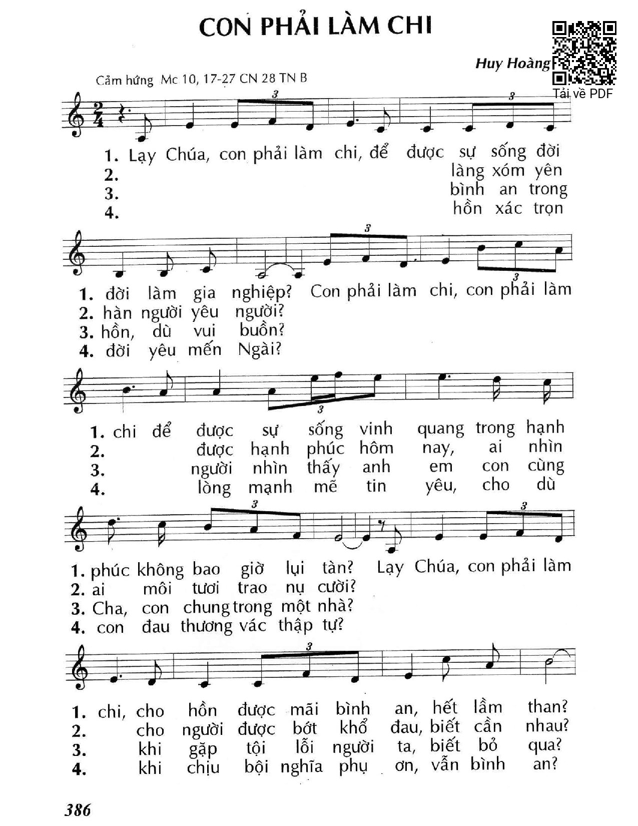 Sheet music Con phải làm chi (Mc. 10) by Huy Hoàng and PDF file was posted here to support you to practice singing perfectly. Sheets with notes and chords are for reference only, for non-commercial purposes only, not involved with earning money by buying and selling. Copyright is belong to song writer/author and copyright owner. Truongca.com do not own any copyrighted content. You can download the high-quality PDF files which contain staffs by PDF link above.