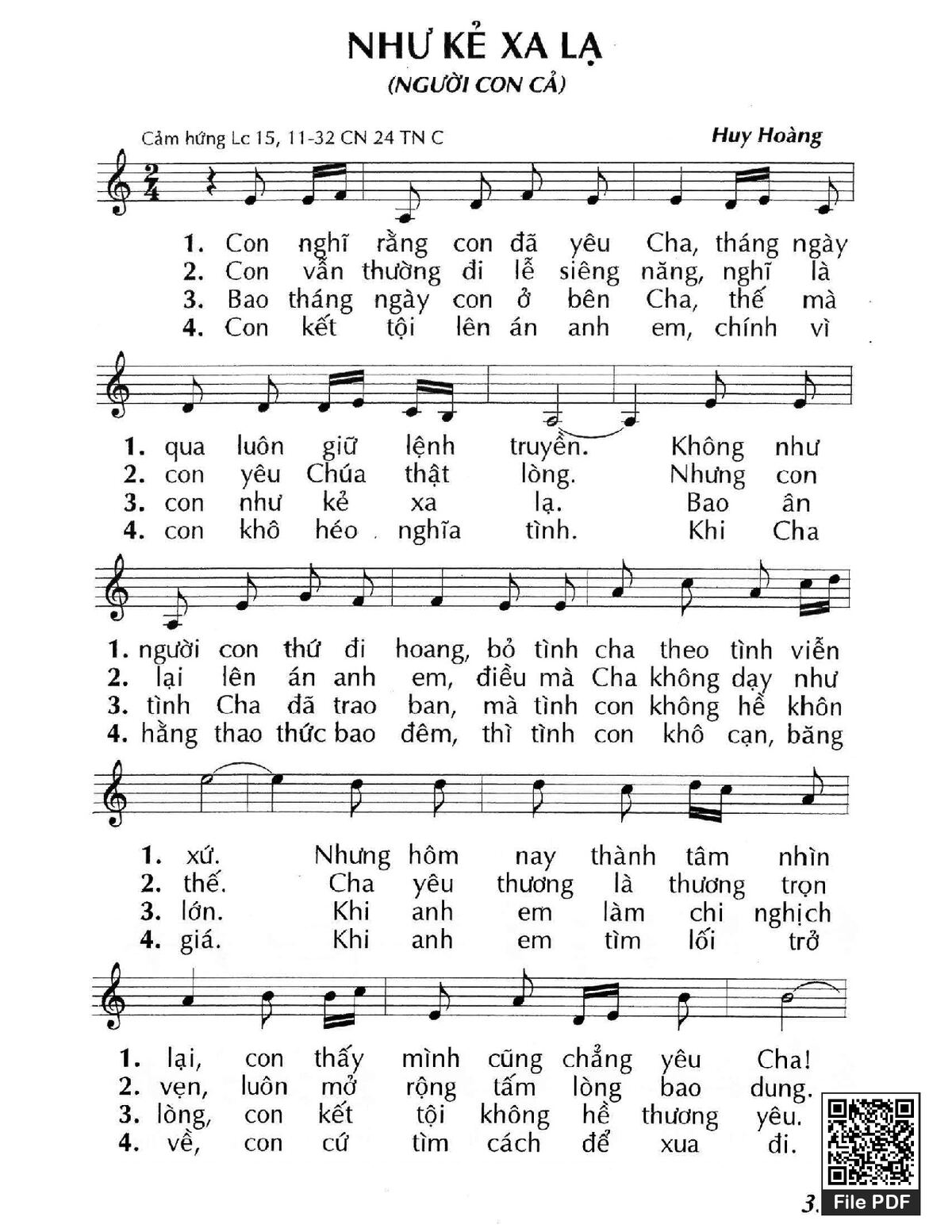 Page 1 of Sheet music PDF Như kẻ xa lạ (Lc. 15) - Huy Hoàng