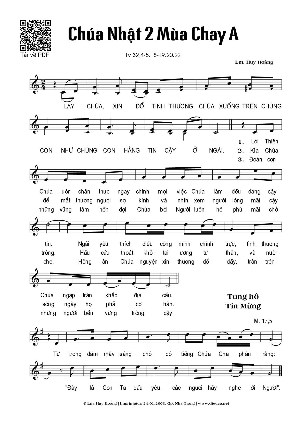 Page 1 of Sheet music PDF Chúa Nhật 2A Mùa Chay (Thánh Vịnh 32) - Huy Hoàng