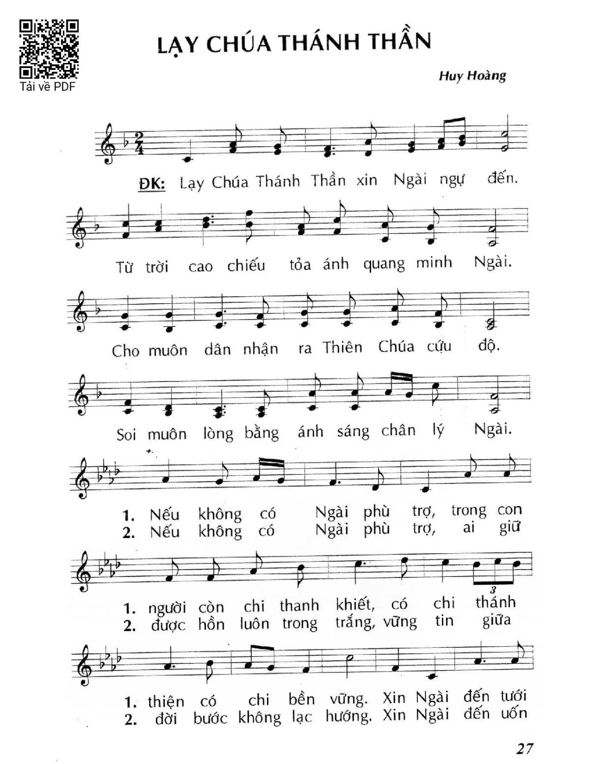 Page 1 of Sheet music PDF Lạy Chúa Thánh Thần - Huy Hoàng