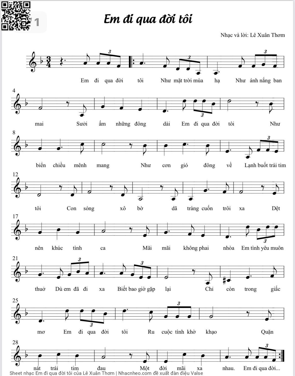 Lê Xuân Thơm Em đi qua đời tôi như mặt trời mùa Hạ [PDF] [Sheet] [Lyrics] [Mp4/Midi]